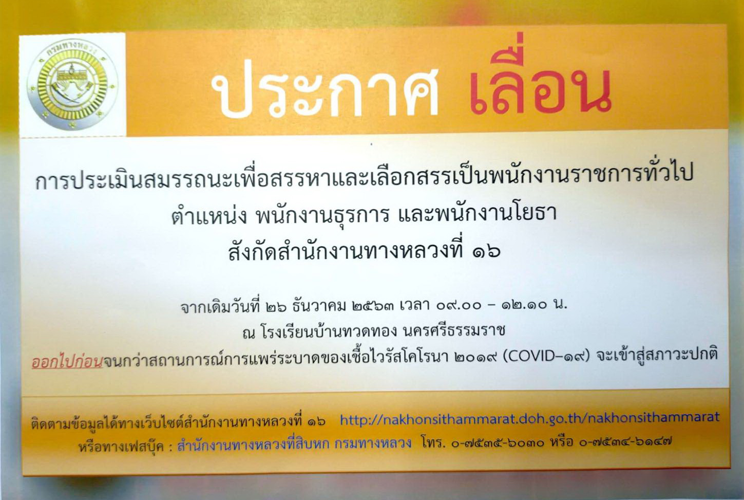 | ประกาศเลื่อนการประเมินสมรรถนะฯ พนักงานราชการ ตำแหน่ง พนักงานธุรการ และ พนักงานโยธา ครั้งที่ 2 เนื่องจากสถานการณ์โควิด 19 | 392 | ดาวน์โหลด |