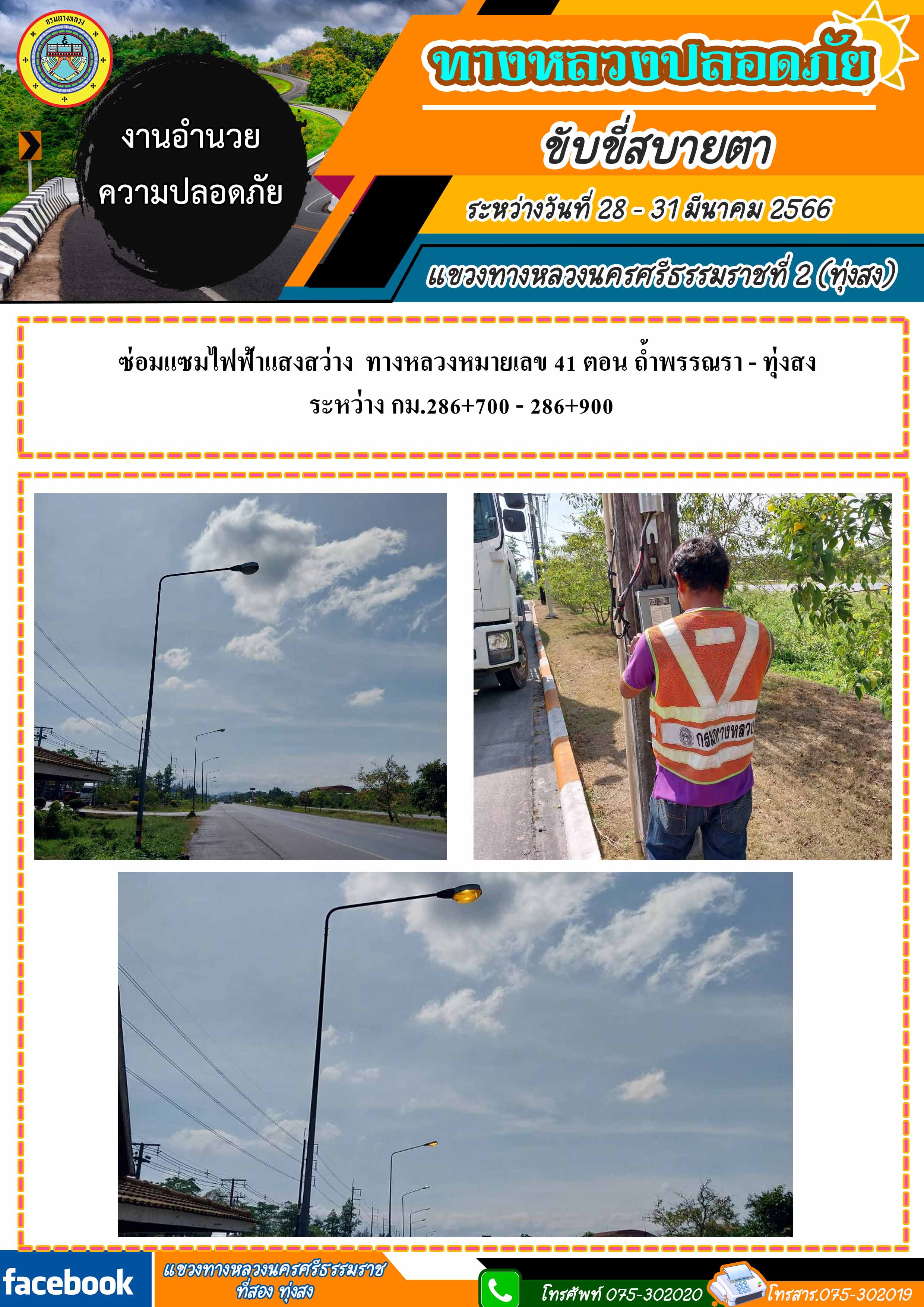 ตรวจรับพัสดุทส.23/2566 งานติดตั้งไฟฟ้าแสงสว่าง ทล. 4194 ตอน ควนสงสาร - กระทูน ระหว่าง กม.27+384 - 29+495