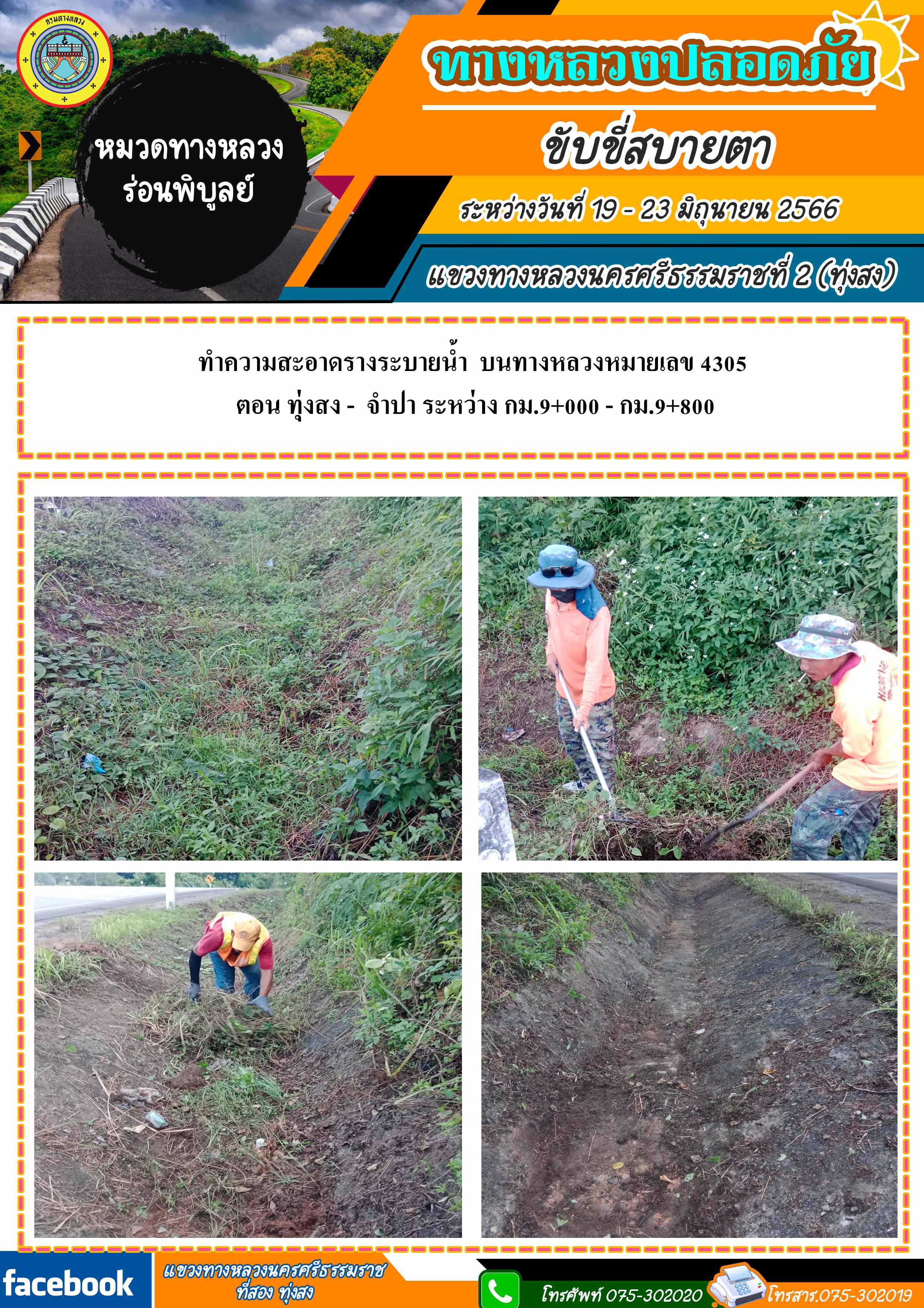 ผลการปฏิบัติงานประจำสัปดาห์ระหว่างวันที่ 8 - 12 พฤษภาคม 2566 โดยหมวดทางหลวงและหน่วยงานในสังกัด