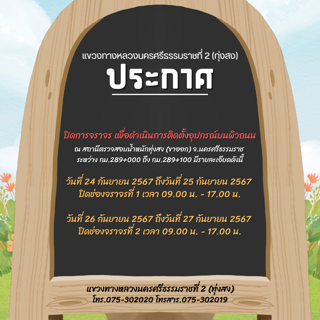62 23/09/2567 ปิดการจราจร เพื่อดำเนินการติดตั้งอุปกรณ์บนผิวถนน