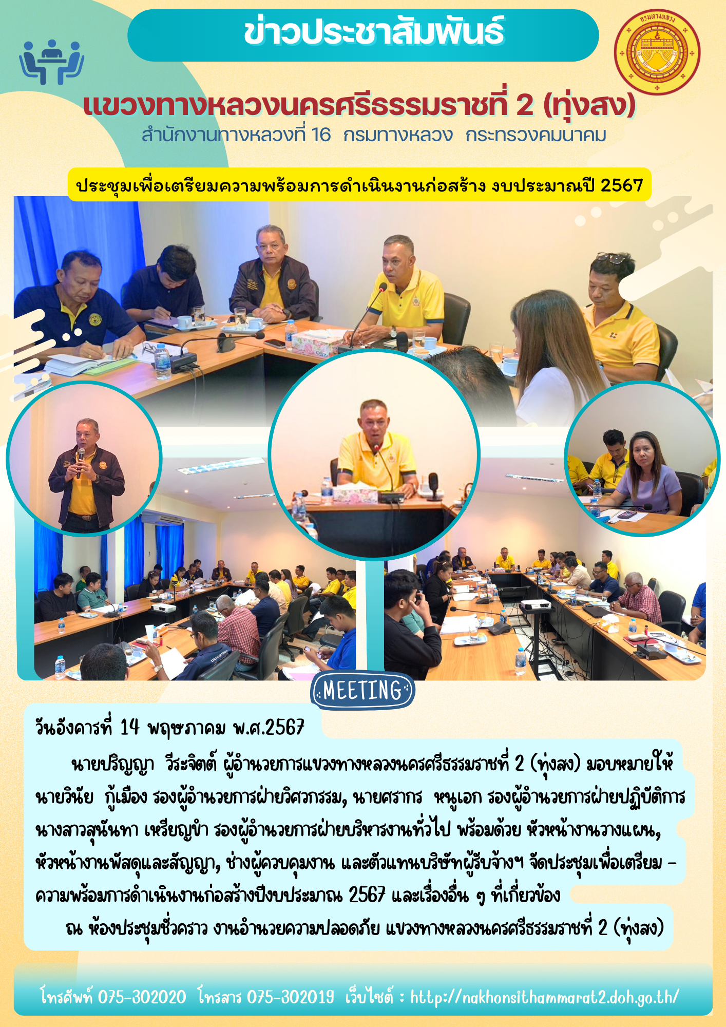 99 25/04/2567 ขออนุญาตปิดถนนบริเวณระบบลูกข่าย (Virtual Weigh Station) ของสถานีตรวจสอบน้ำหนักทุ่งสง จ.นครศรีธรรมราช