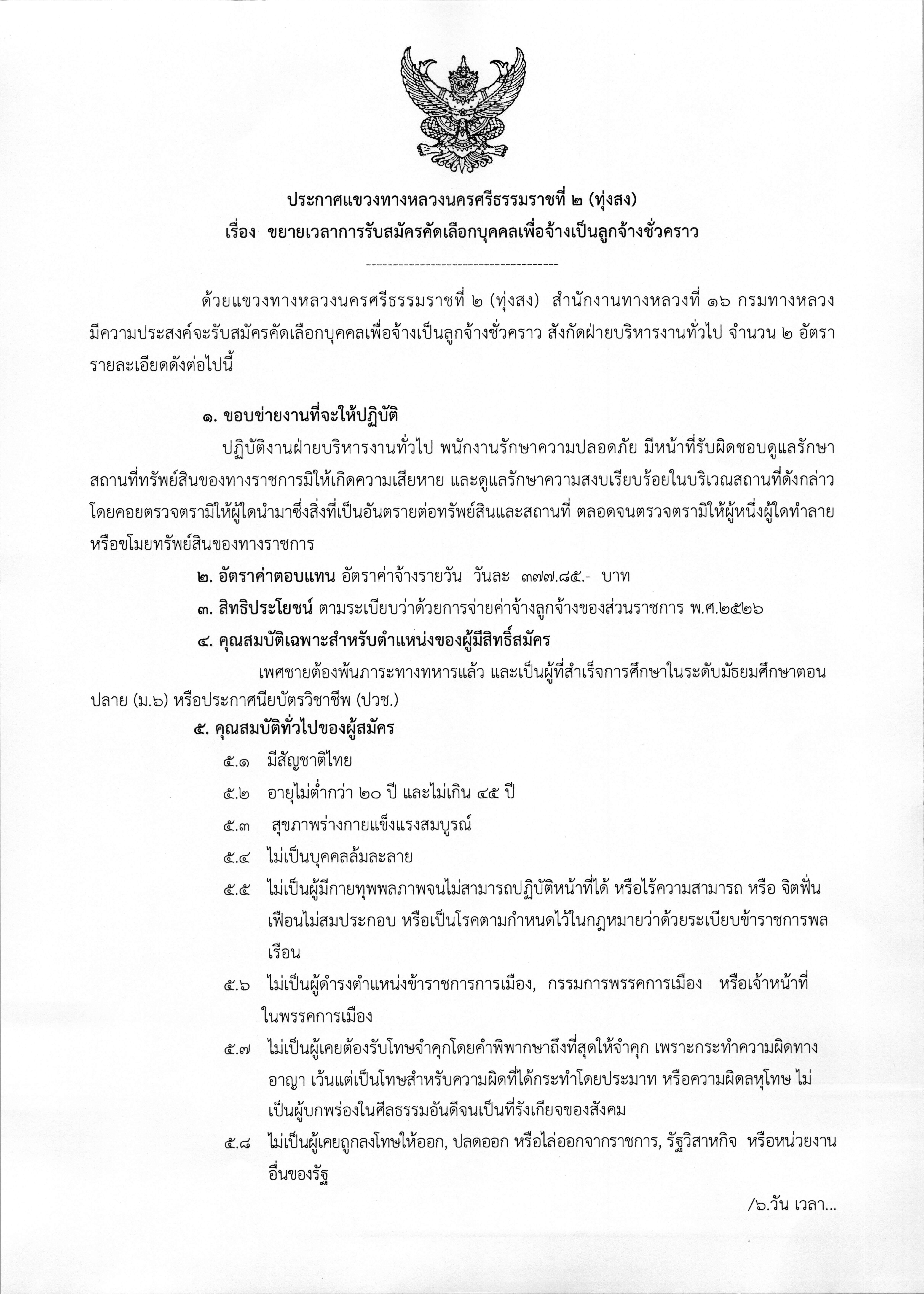 แขวงทางหลวงนครศรีธรรมราชที่ 2 (ทุ่งสง)  จะประกาศรายชื่อผู้ผ่านการคัดเลือกเพื่อจัดจ้างเป็นลูกจ้างชั่วคราว โดยผ่านทาง Facebook และบอร์ดประชาสัมพันธ์ ณ แขวงทางหลวงนครศรีธรรมราชที่ 2 (ทุ่งสง)