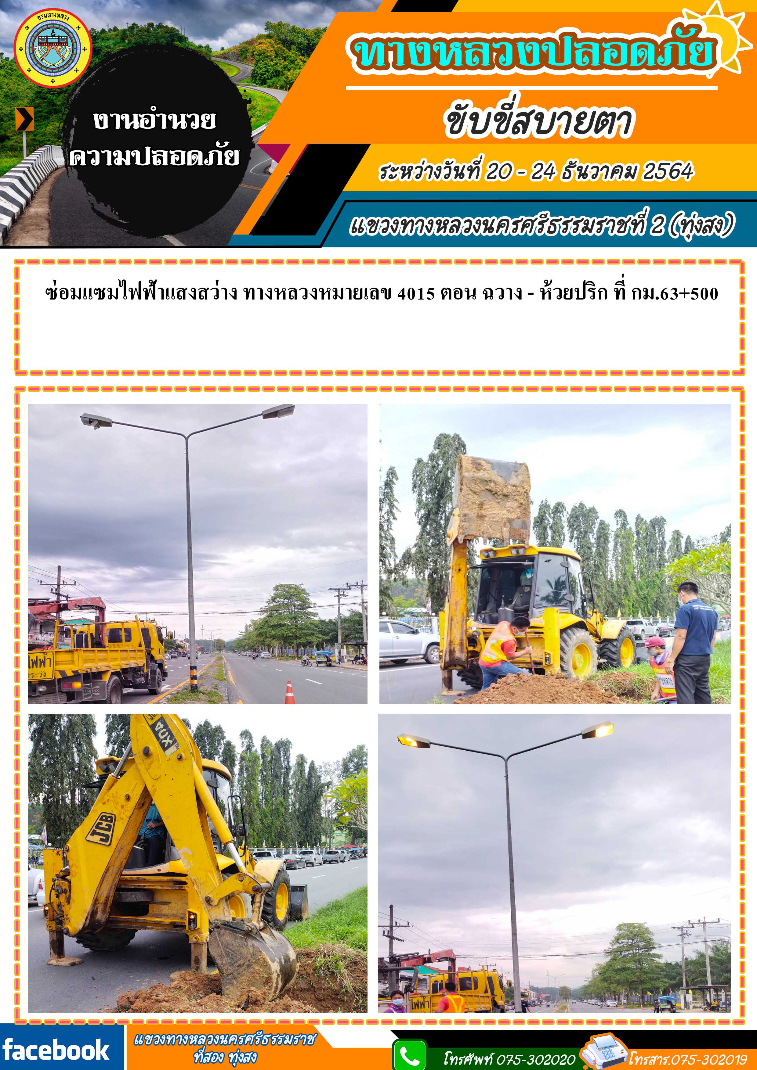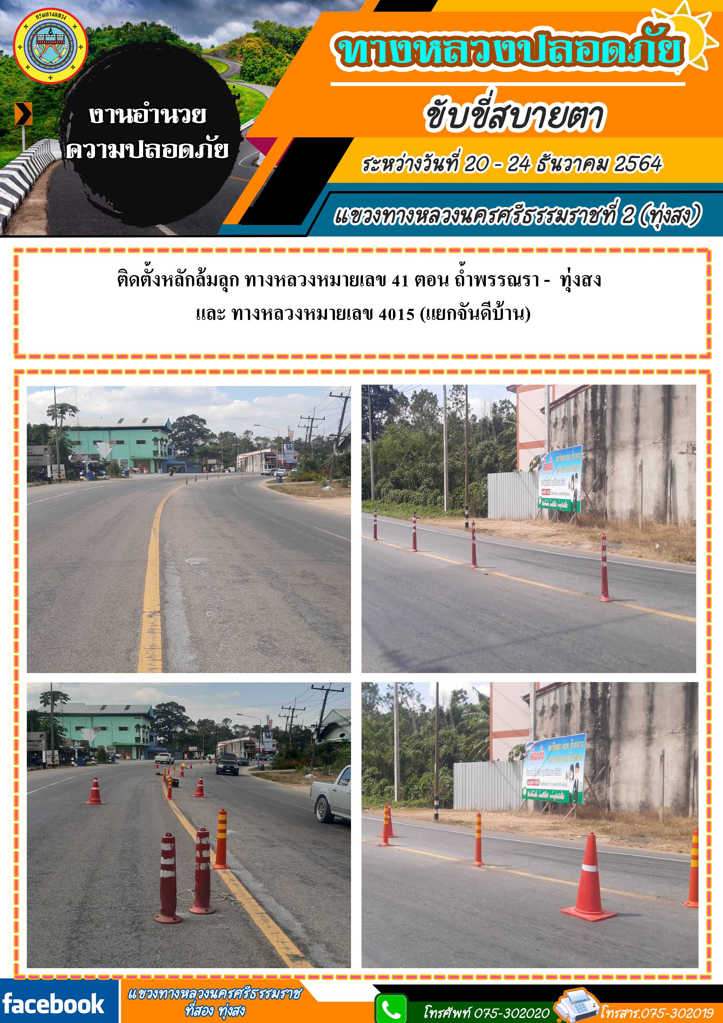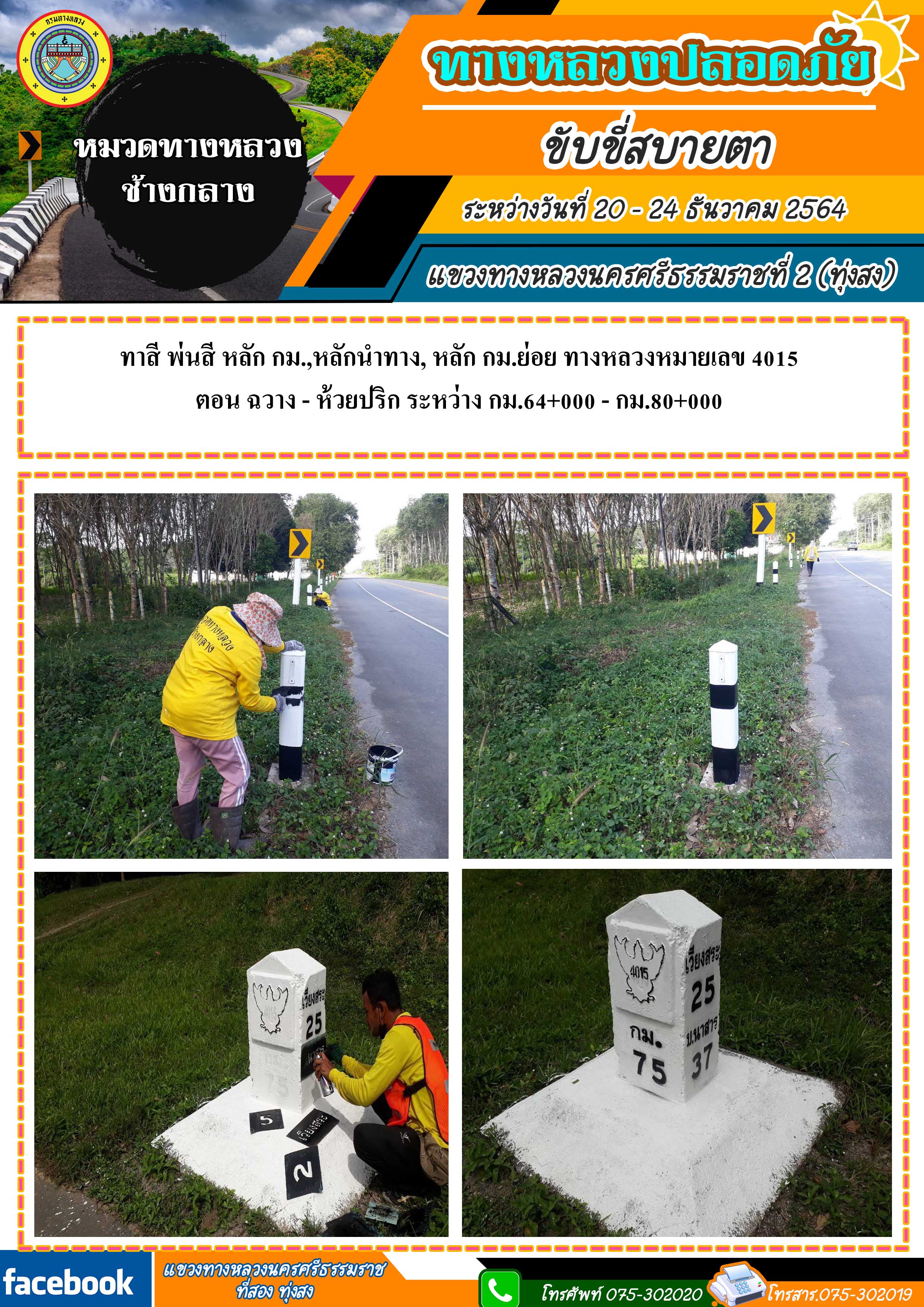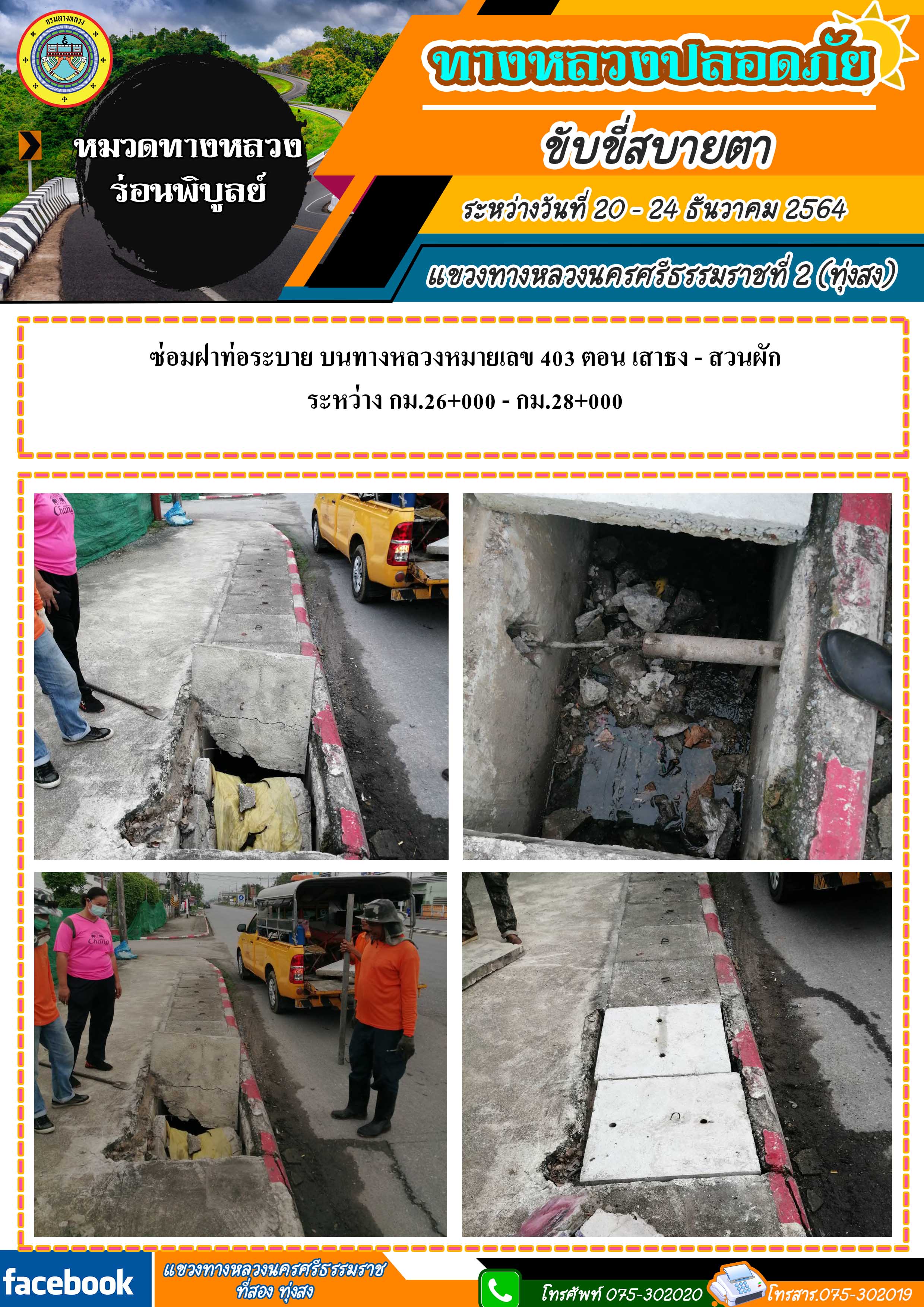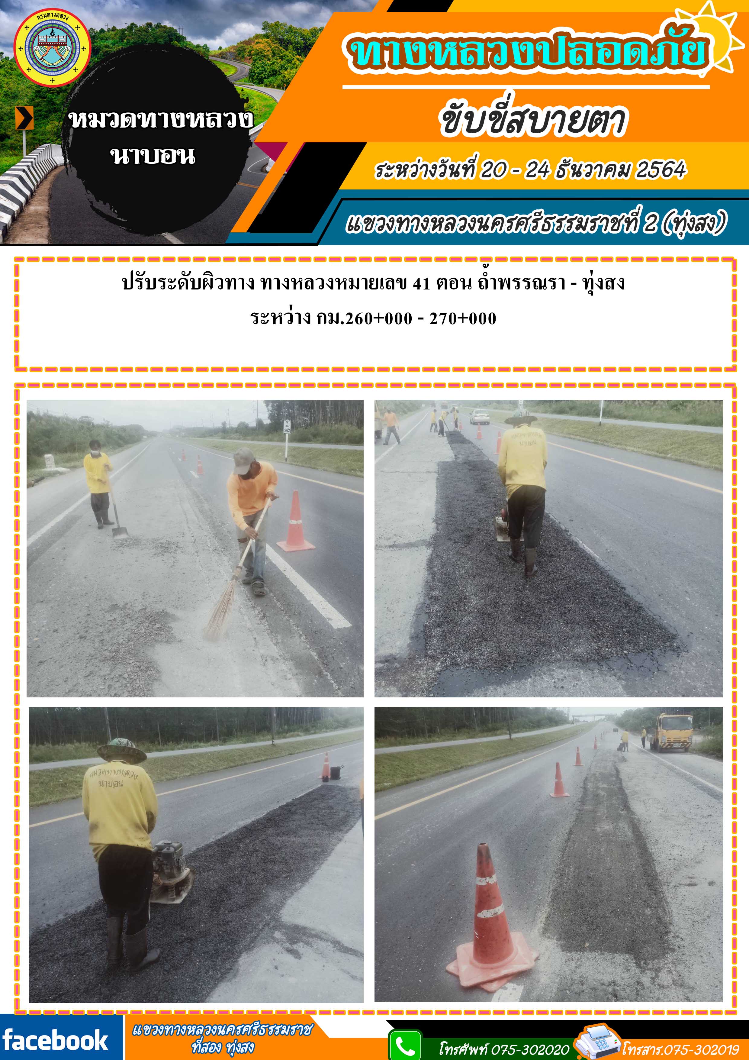 ทางหลวงปลอดภัย ขับขี่สบายตา ผลการปฏิบัติงานประจำสัปดาห์ของแขวงทางหลวงนครศรีธรรมราชที่ 2 (ทุ่งสง) ระหว่างวันที่ 20 - 24 ธันวาคม 2564 โดยหมวดทางหลวงและหน่วยงานในสังกัด
