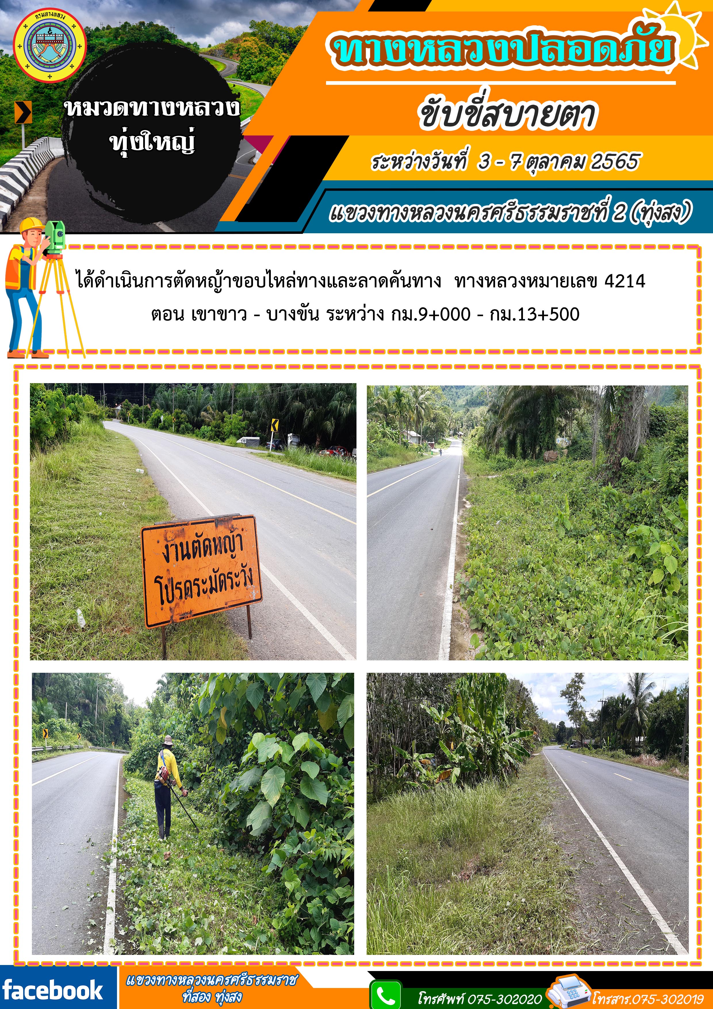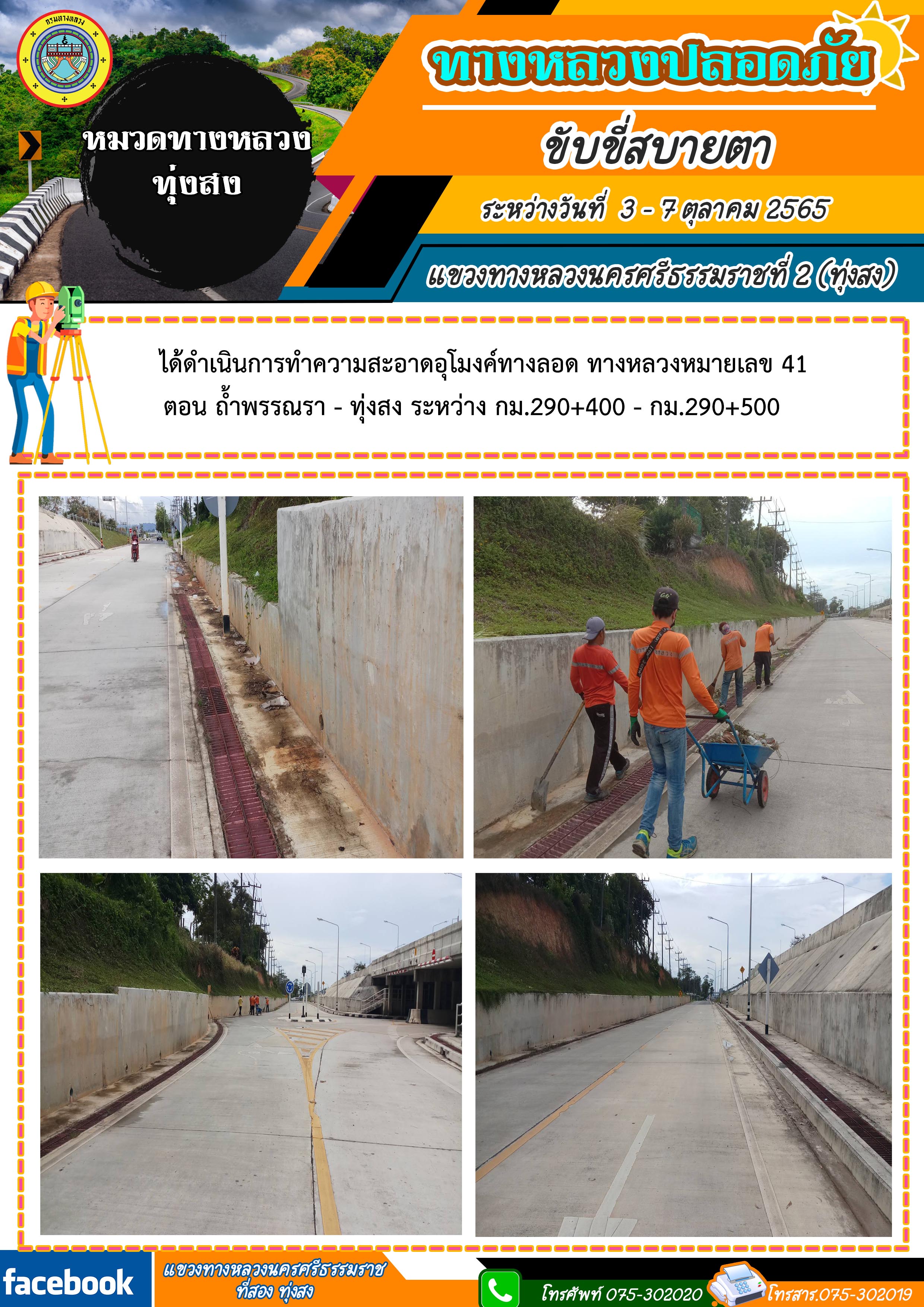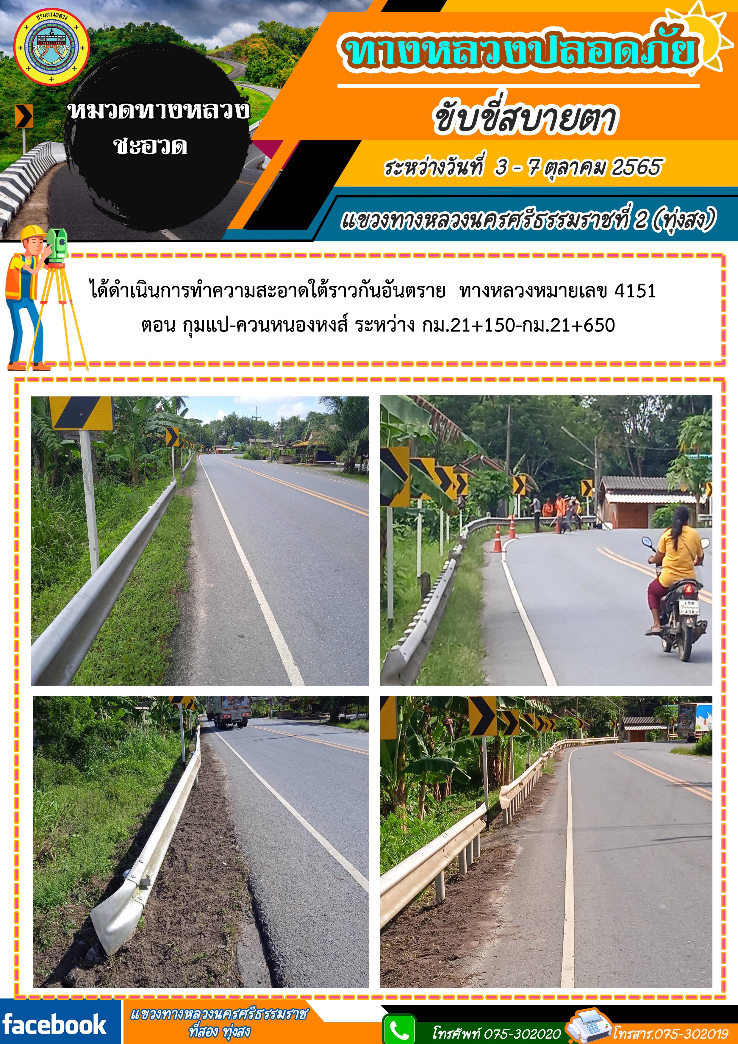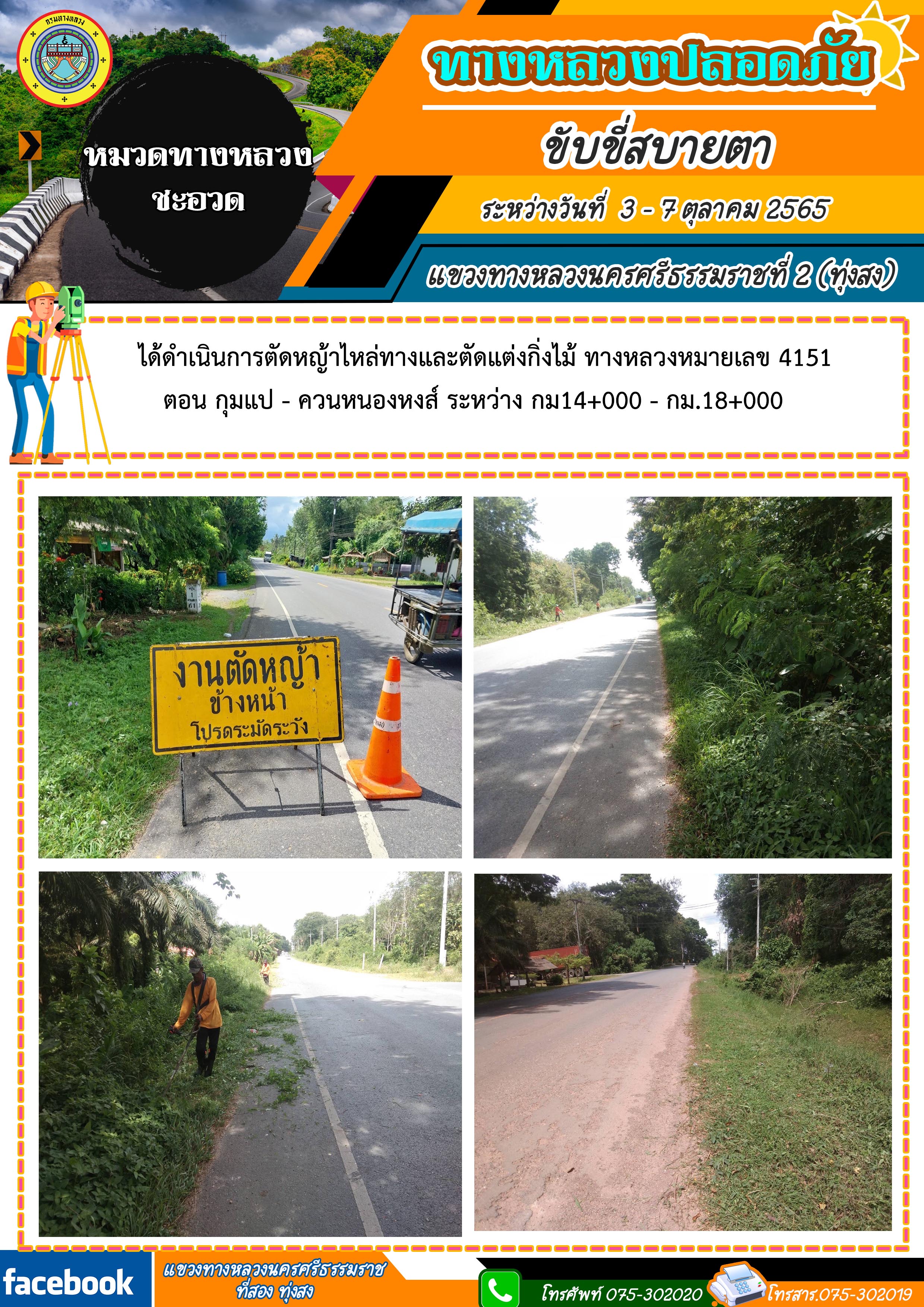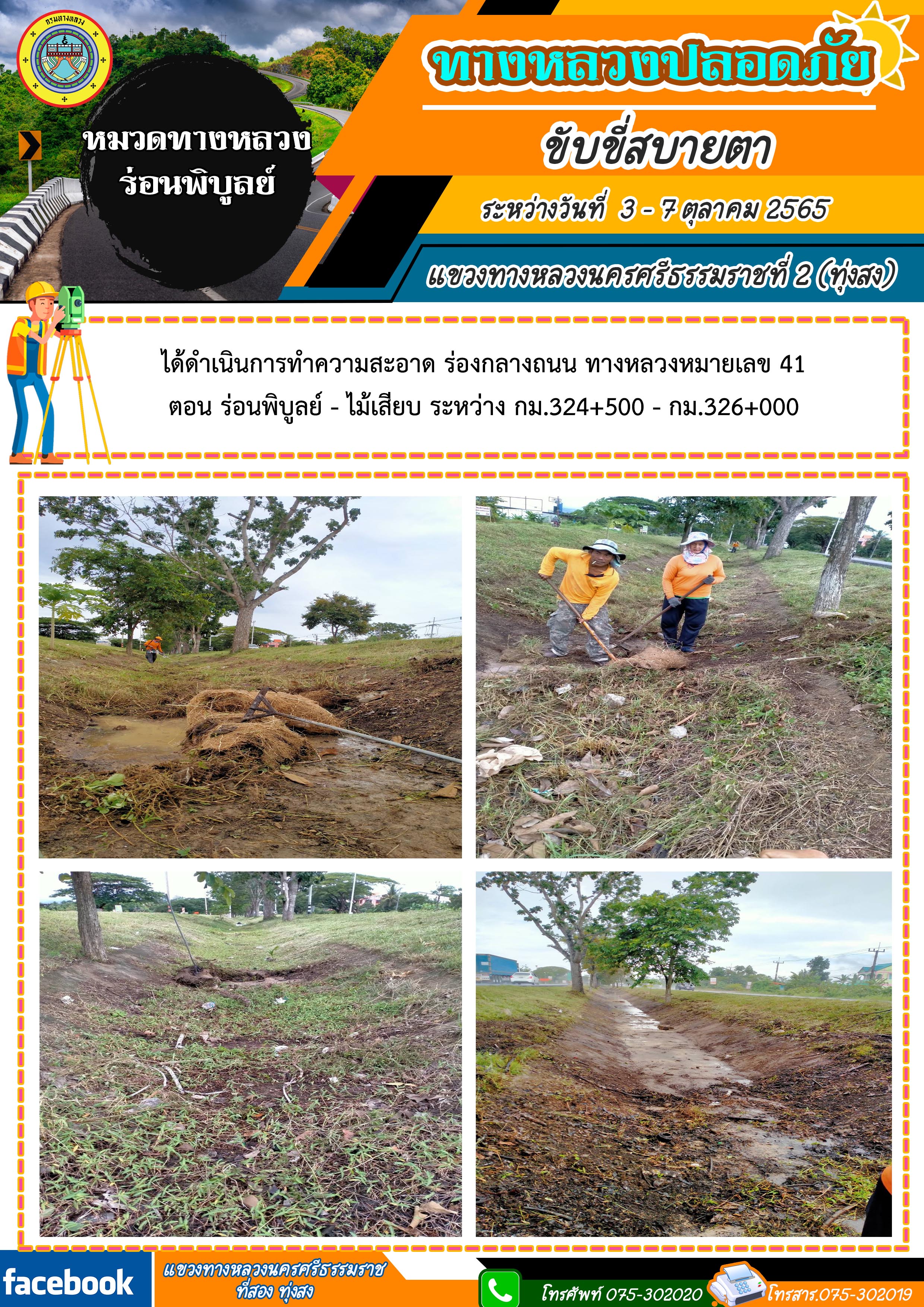ผลการปฏิบัติงานประจำสัปดาห์ของแขวงทางหลวงนครศรีธรรมราชที่ 2 (ทุ่งสง) ระหว่างวันที่ 3 - 7 ตุลาคม 2565 โดยหมวดทางหลวงและหน่วยงานในสังกัด
