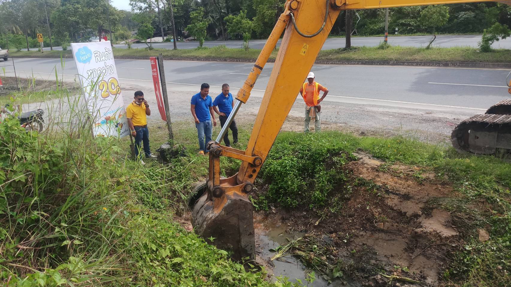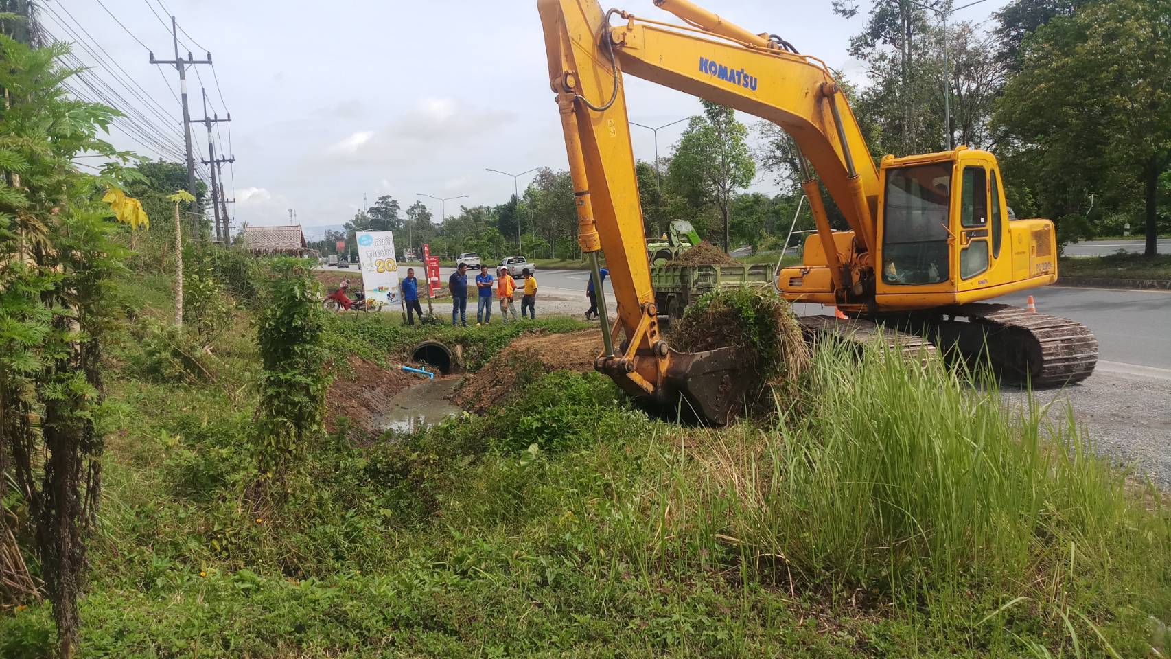 หมวดทางหลวงทุ่งสง ร่วมกับ องค์การบริหารส่วนจังหวัดนครศรีธรรมราช และเทศบาลตำบลกะปาง ร่วมกันแก้ปัญหาระบบระบายน้ำ, กวาดเกลี่ยไหลทาง, คันทาง และขุดลอกทางระบายน้ำ ในทางหลวงหมายเลข 403 ตอน ทุ่งสง - กะปาง ระหว่าง กม.63+ 300 - 63+600 ด้านขวาทาง