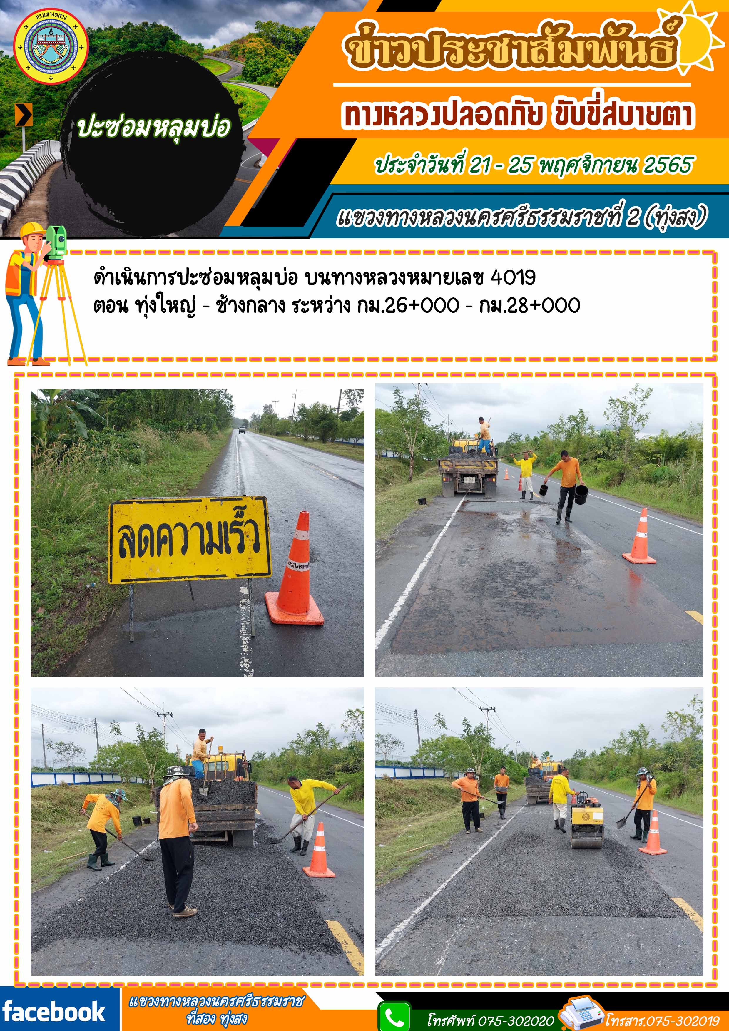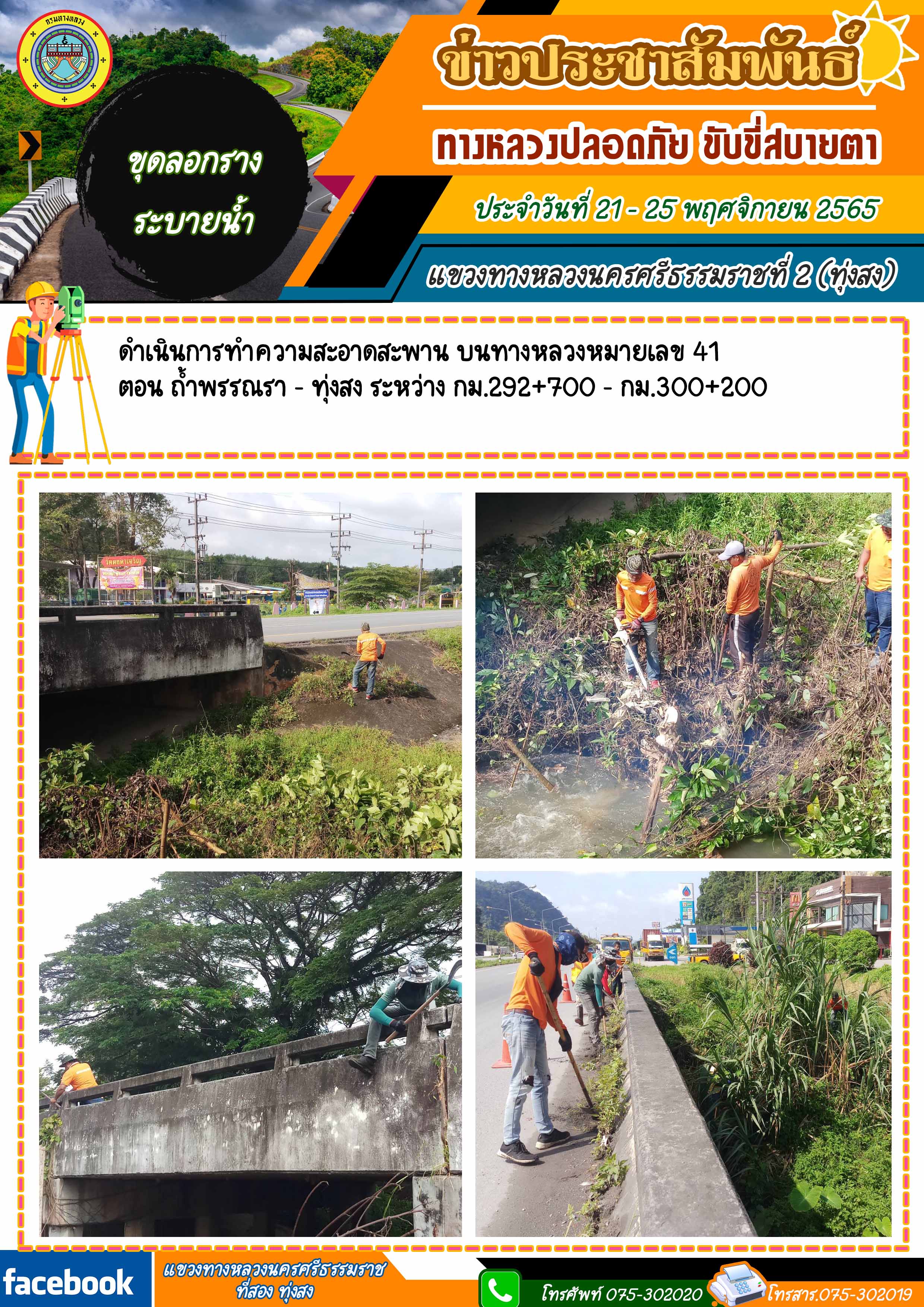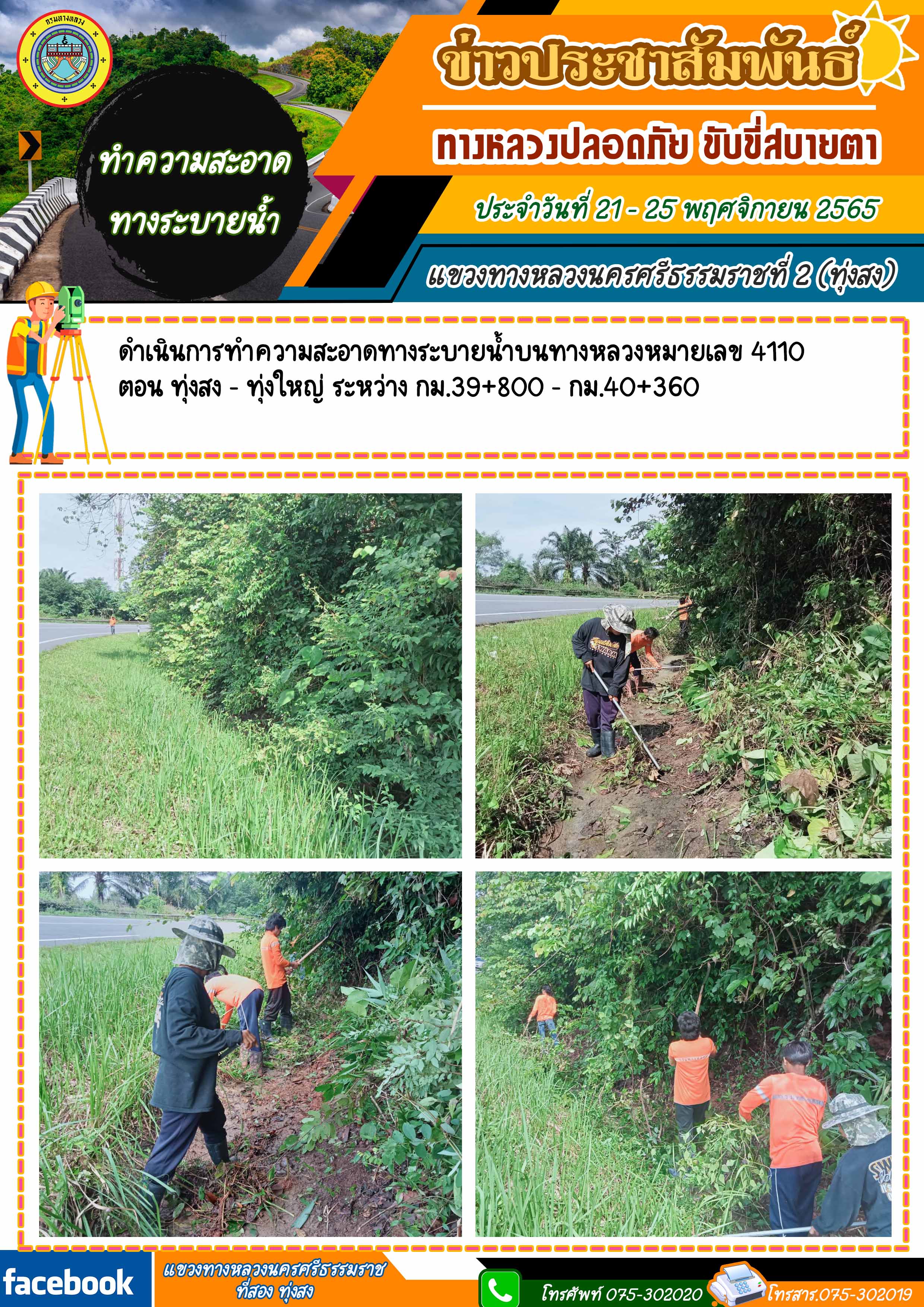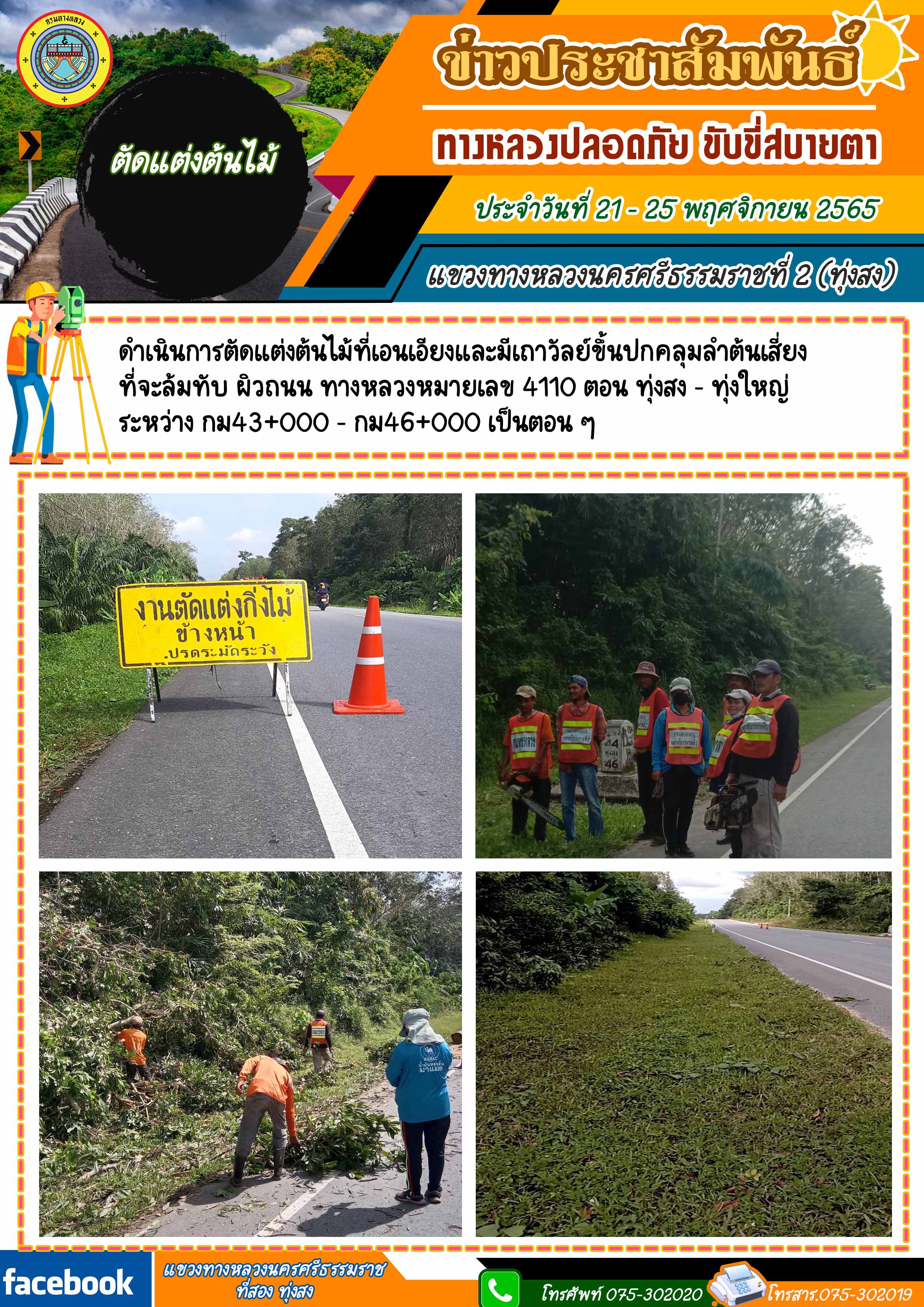 ผลการปฏิบัติงานของหมวดทางหลวงในสังกัด และหน่วยงานของแขวงทางหลวงนครศรีธรรมราชที่ 2 (ทุ่งสง) ระหว่าง วันที่ 21 - 25 พฤศจิกายน 2565