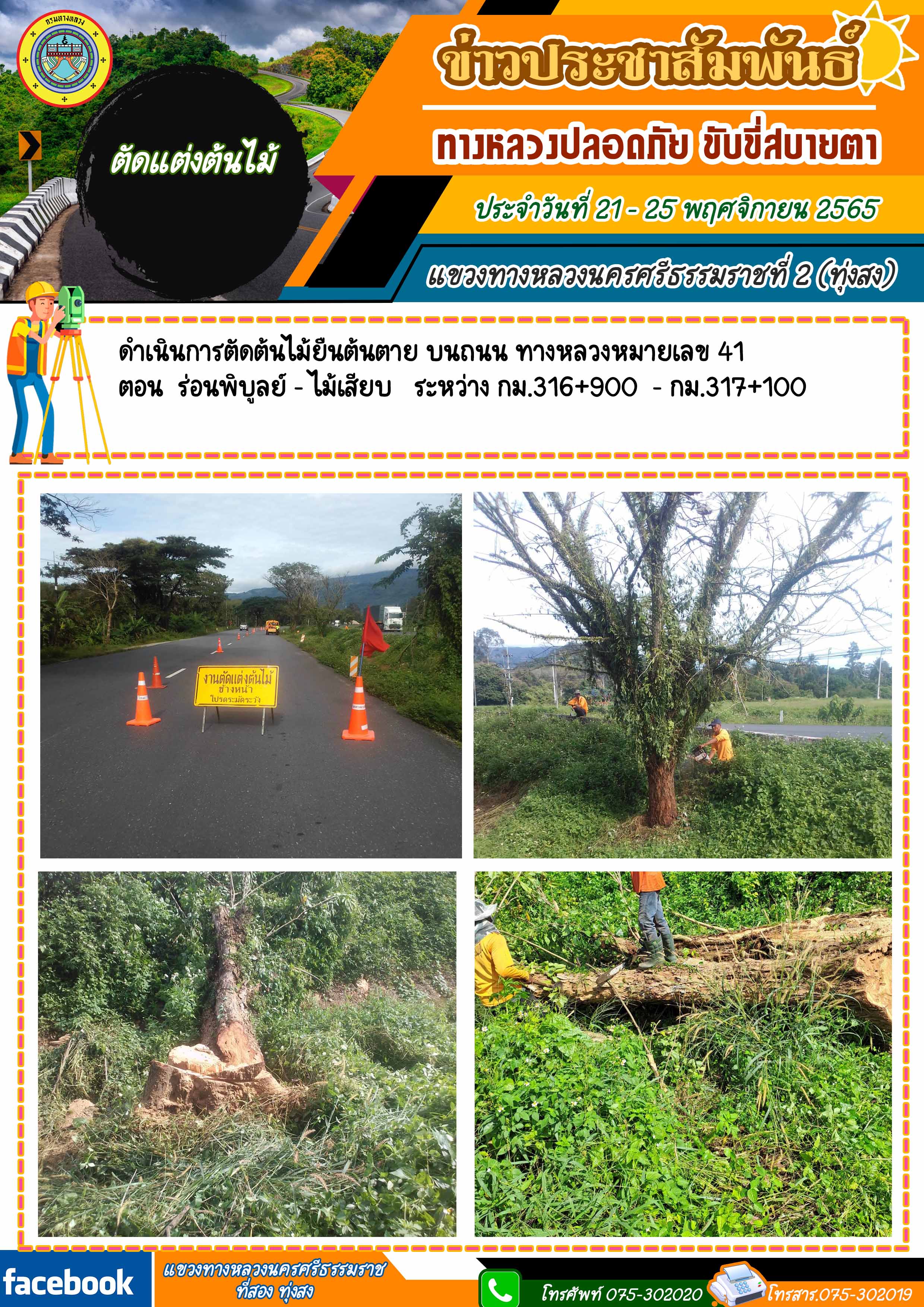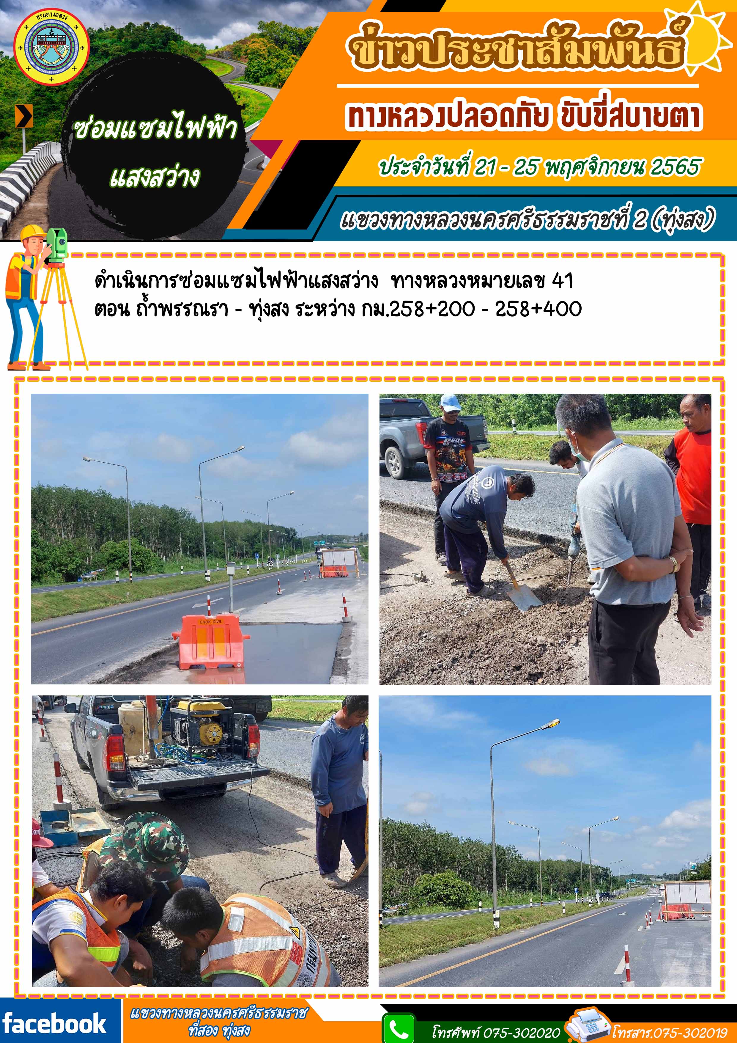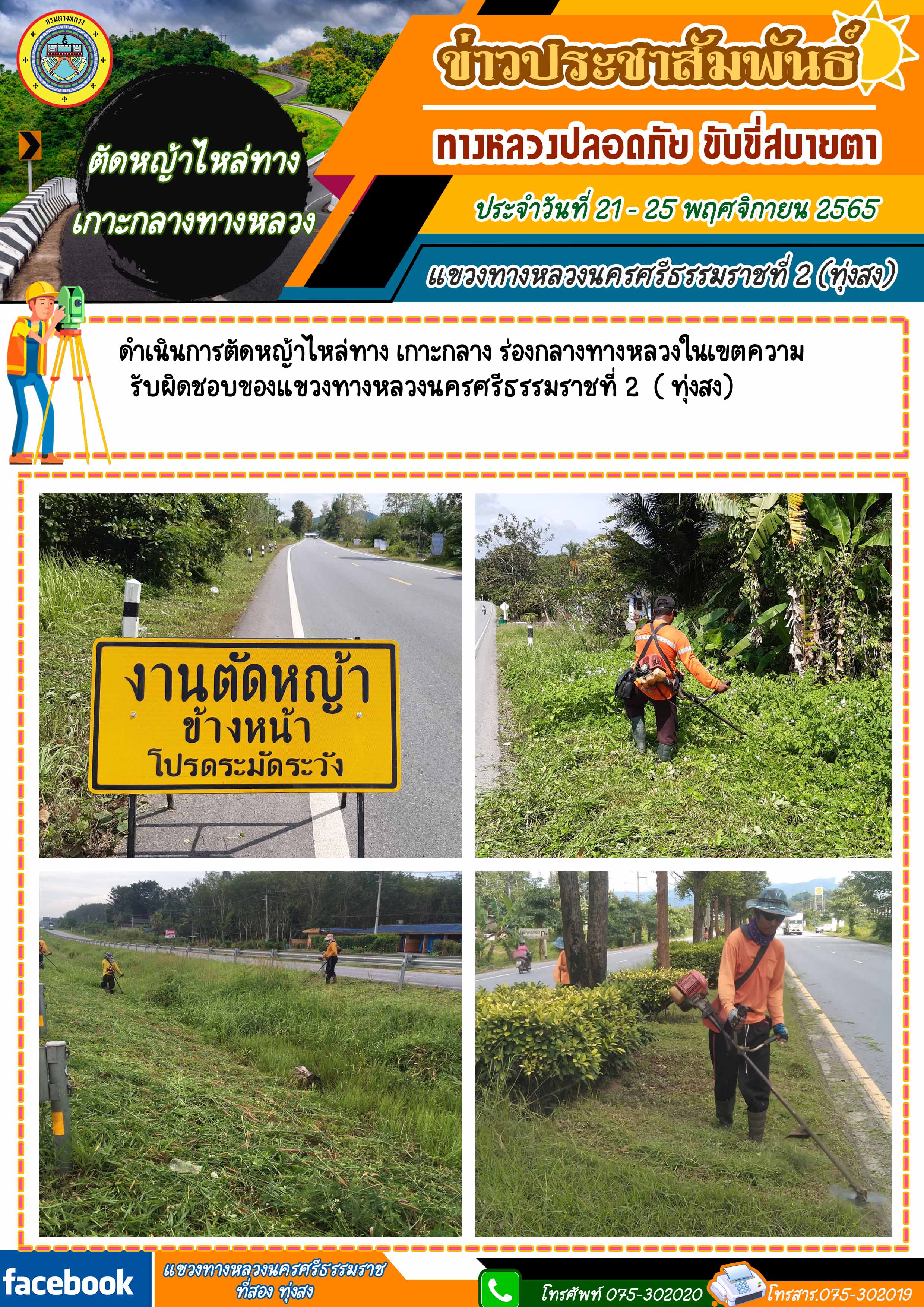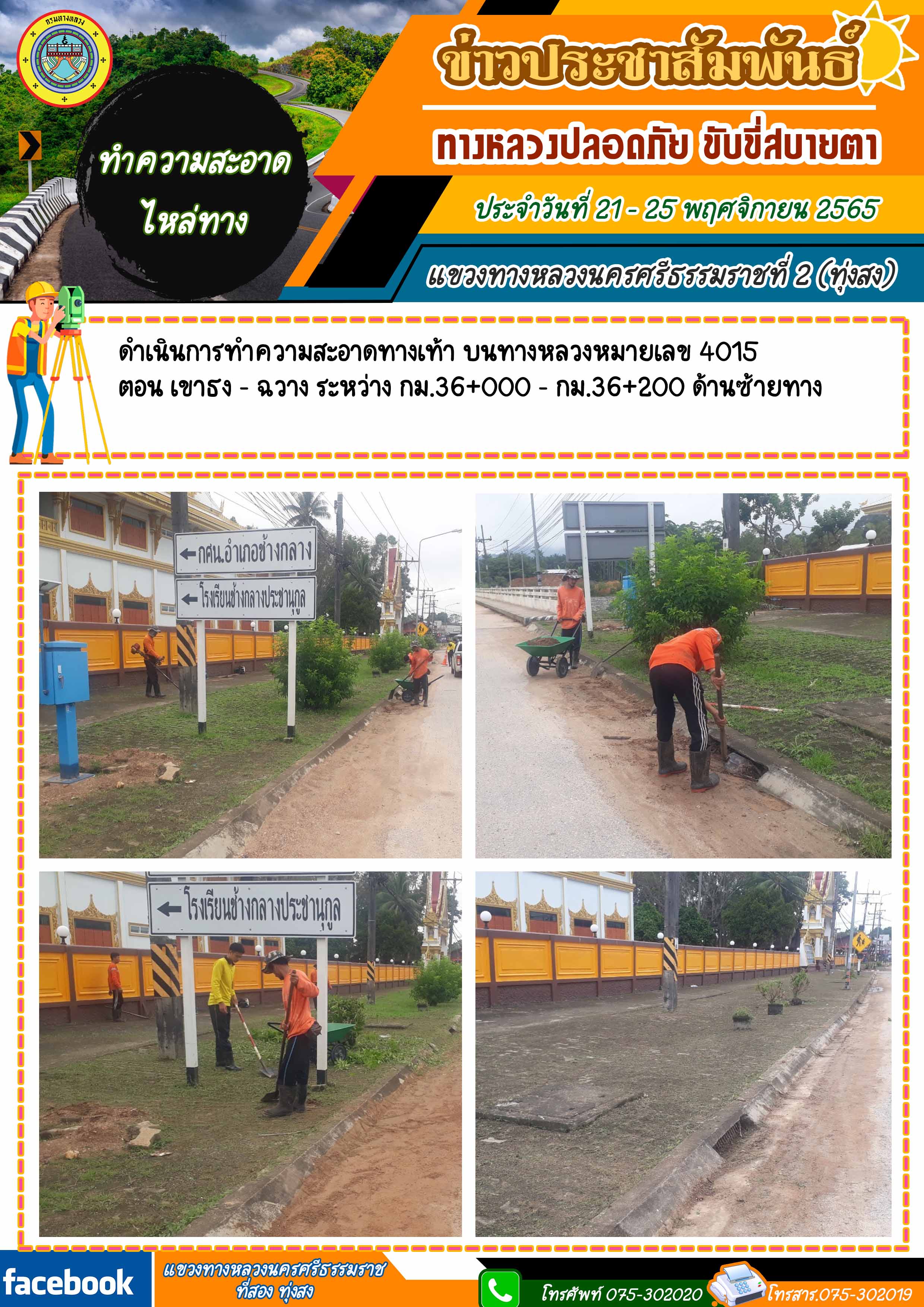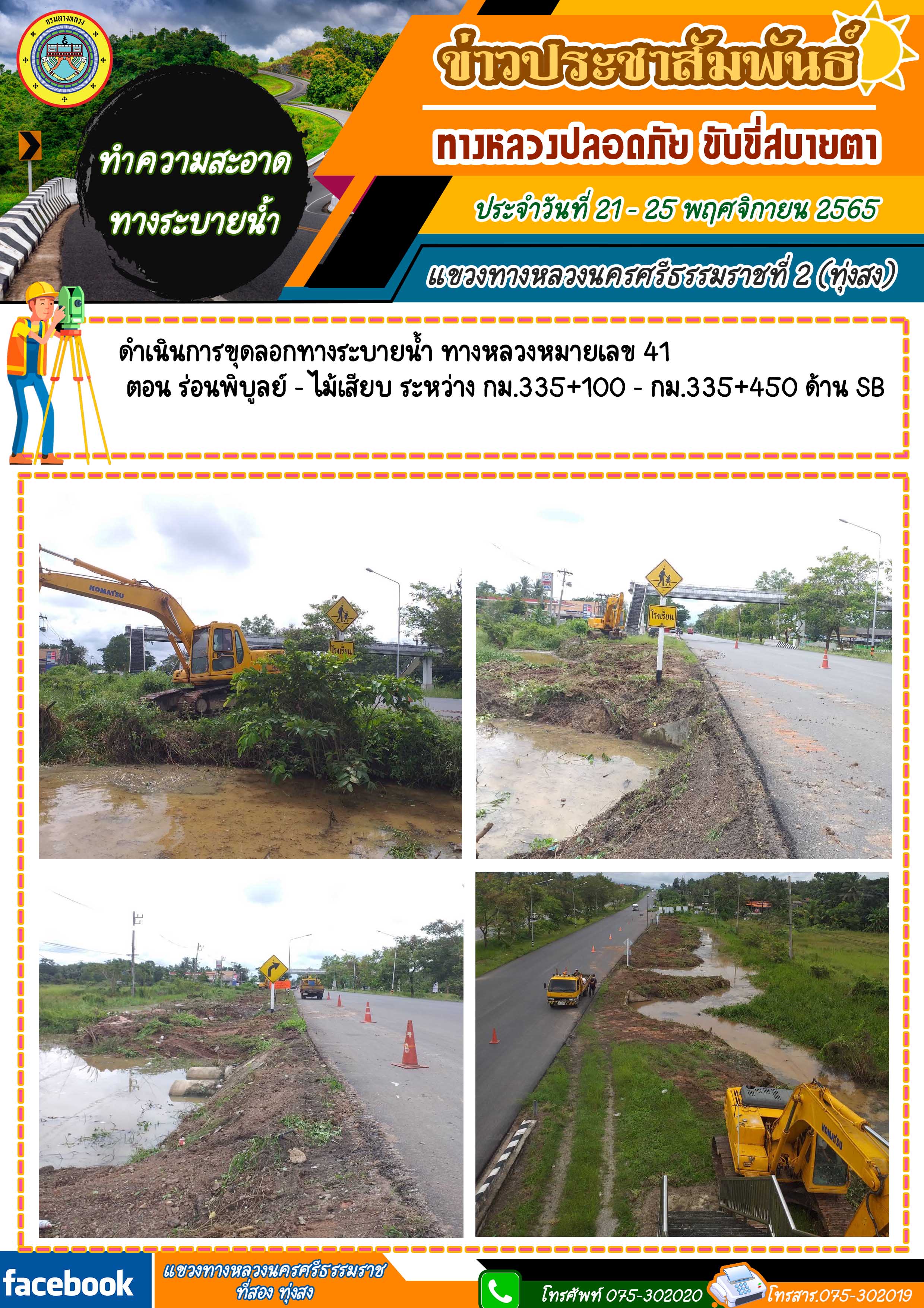 ผลการปฏิบัติงานของหมวดทางหลวงในสังกัด และหน่วยงานของแขวงทางหลวงนครศรีธรรมราชที่ 2 (ทุ่งสง) ระหว่าง วันที่ 21 - 25 พฤศจิกายน 2565