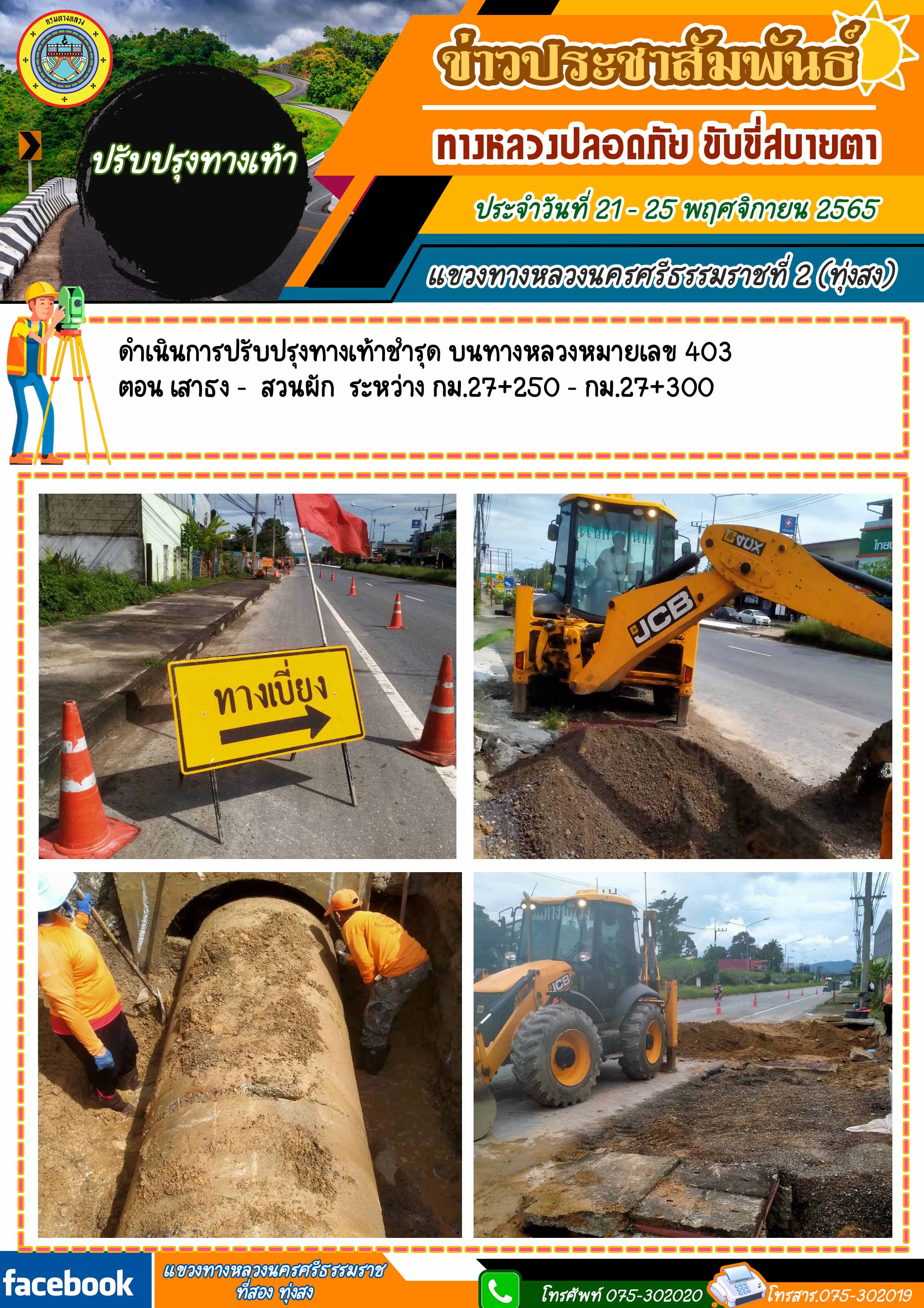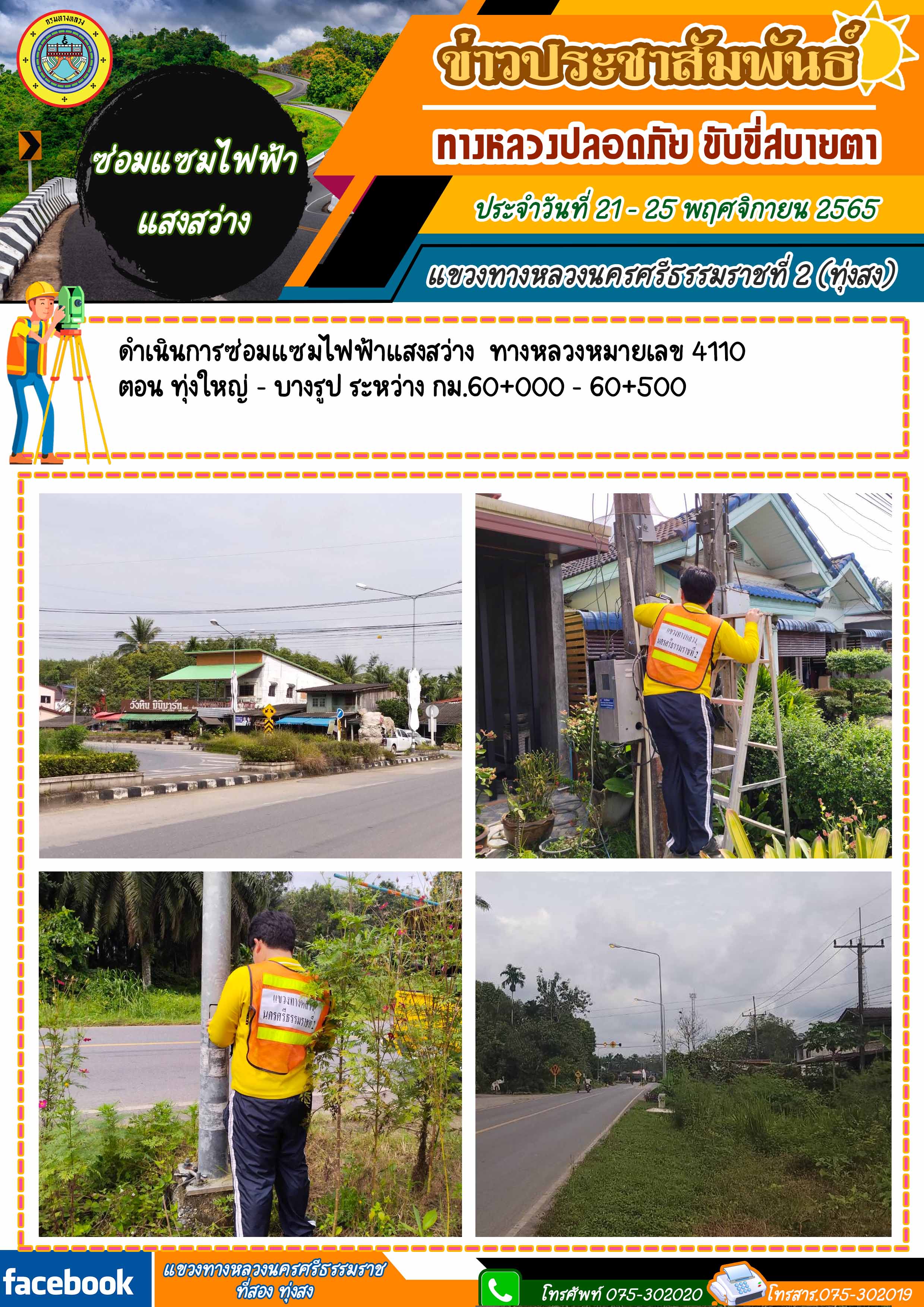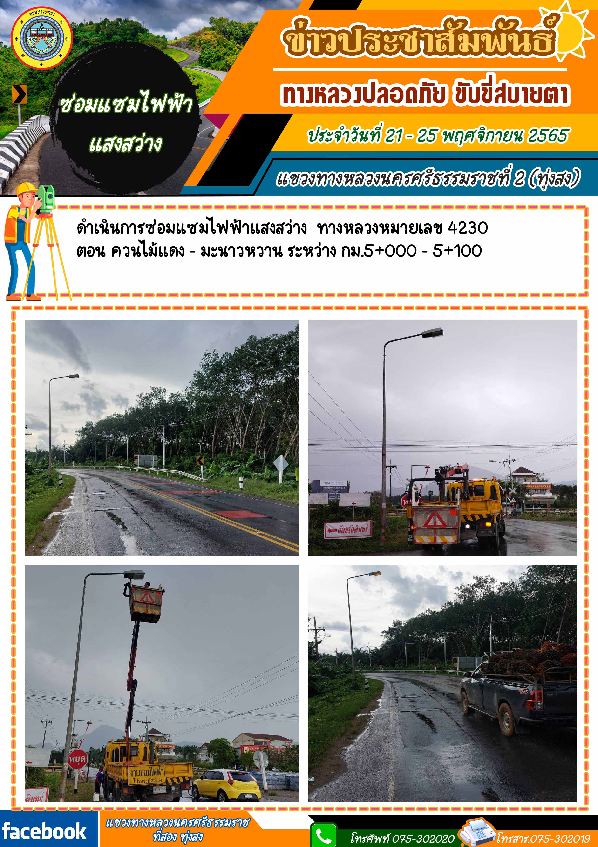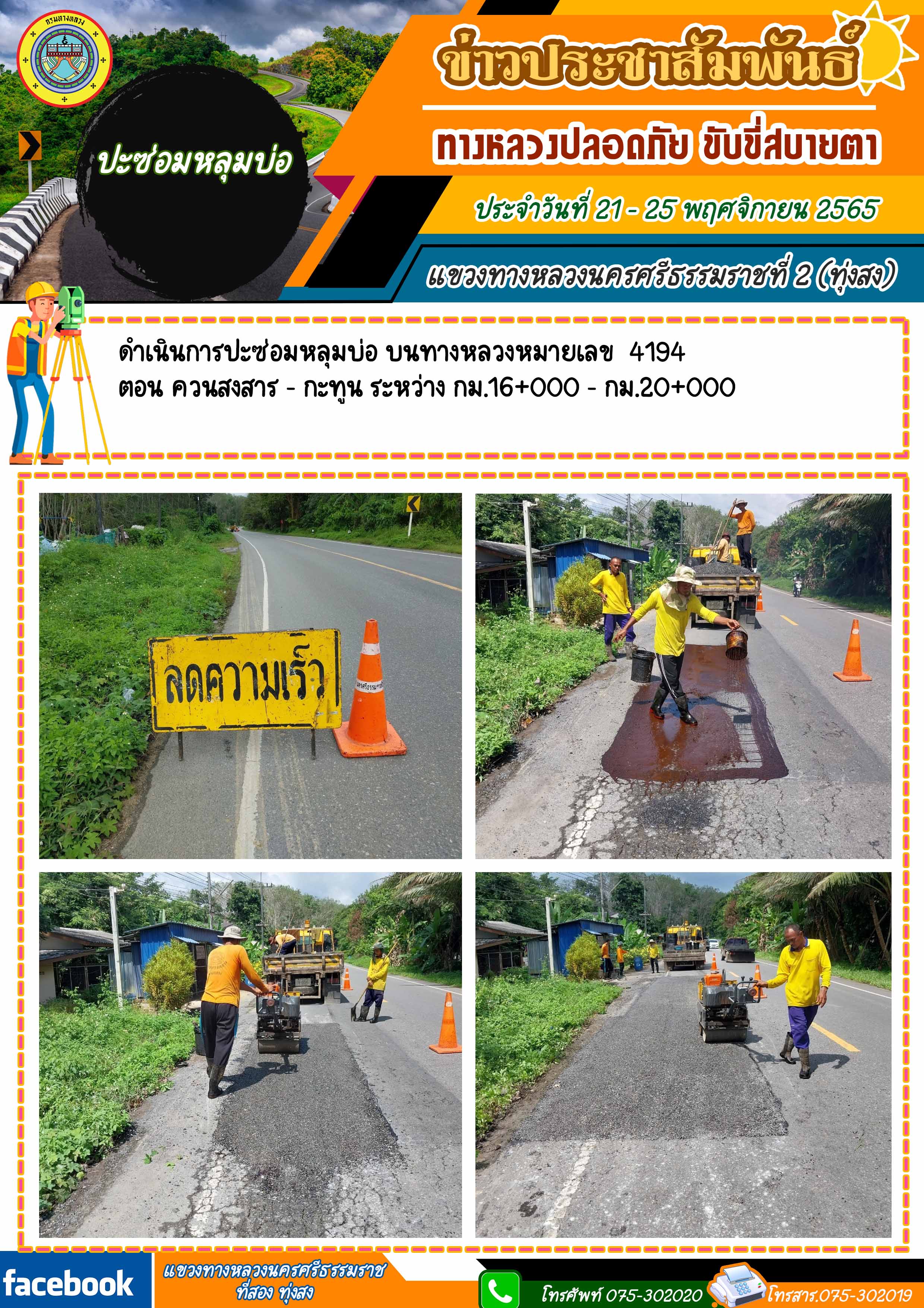 ผลการปฏิบัติงานของหมวดทางหลวงในสังกัด และหน่วยงานของแขวงทางหลวงนครศรีธรรมราชที่ 2 (ทุ่งสง) ระหว่าง วันที่ 21 - 25 พฤศจิกายน 2565