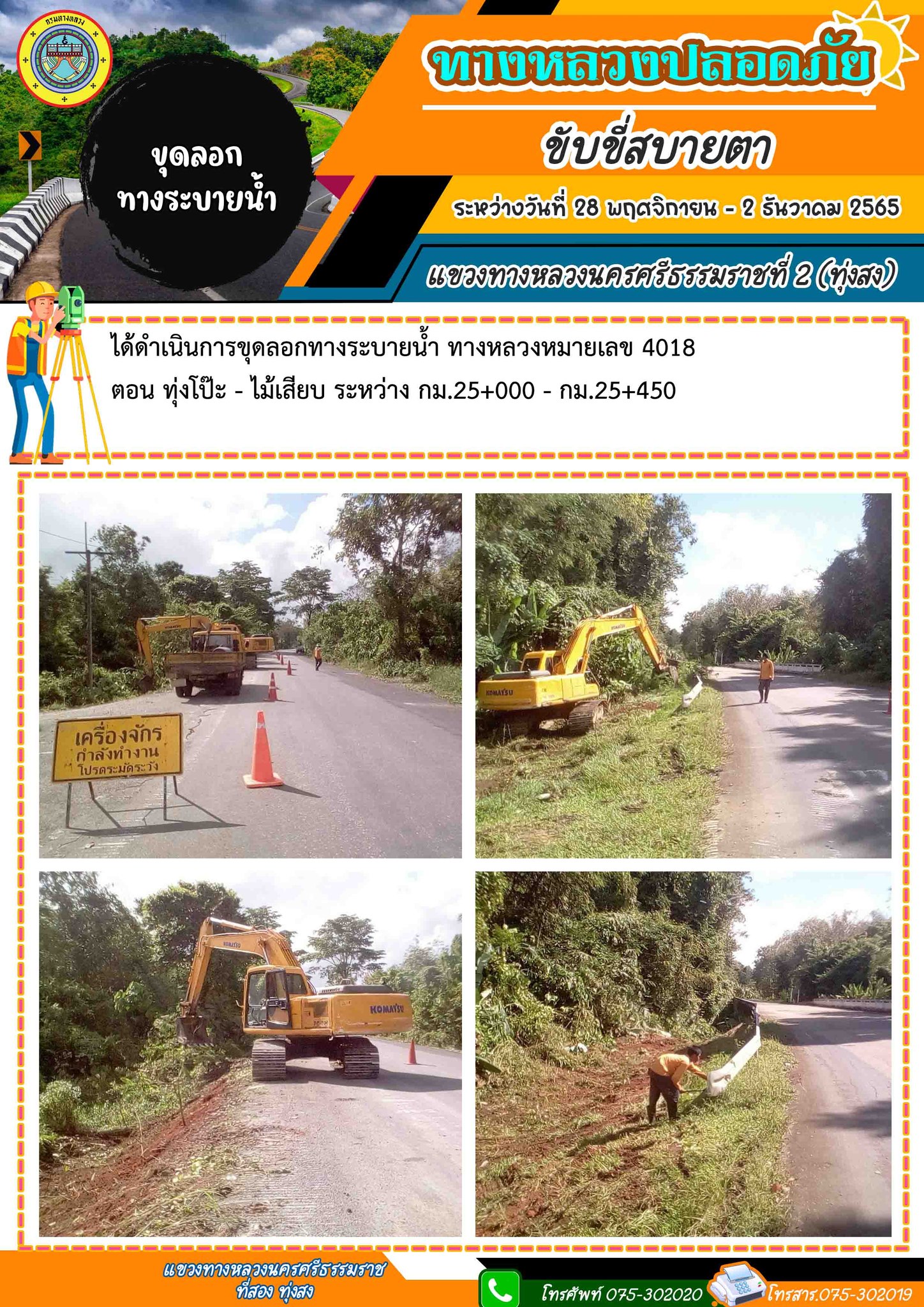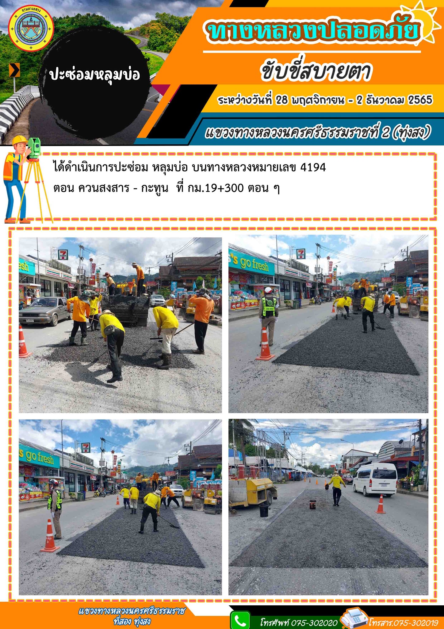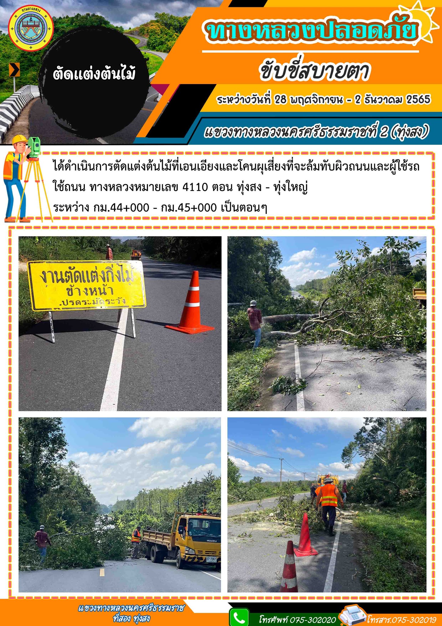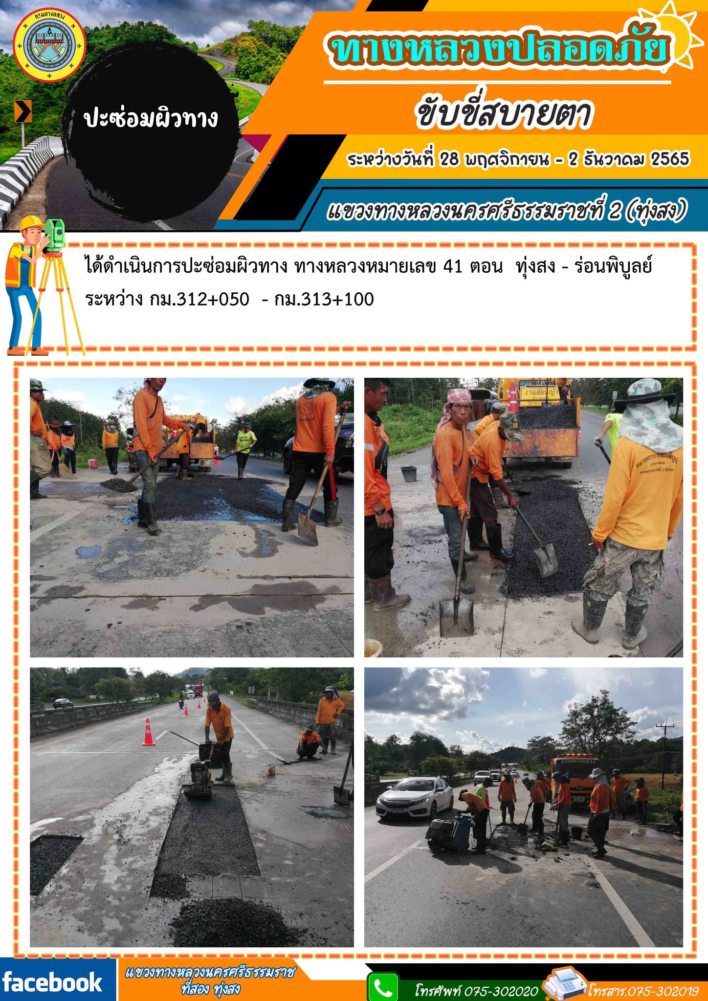ผลการปฏิบัติงานของหมวดทางหลวงในสังกัด และหน่วยงานของแขวงทางหลวงนครศรีธรรมราชที่ 2 (ทุ่งสง) ระหว่าง วันที่ 28 พฤศจิกายน - 2 ธันวาคม 2565