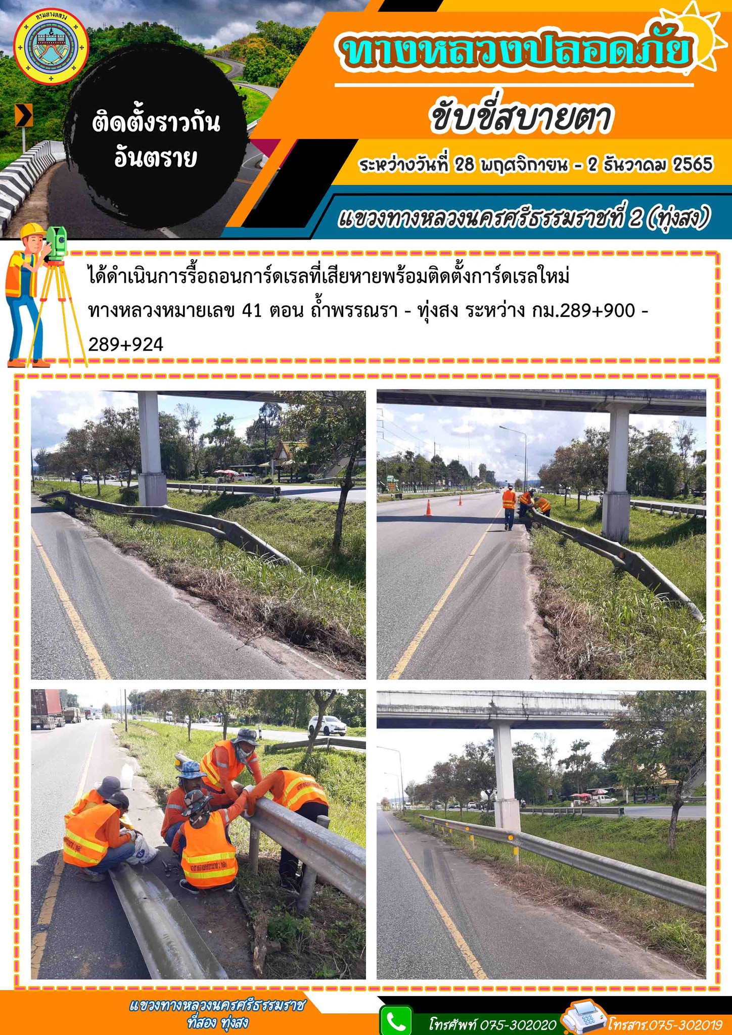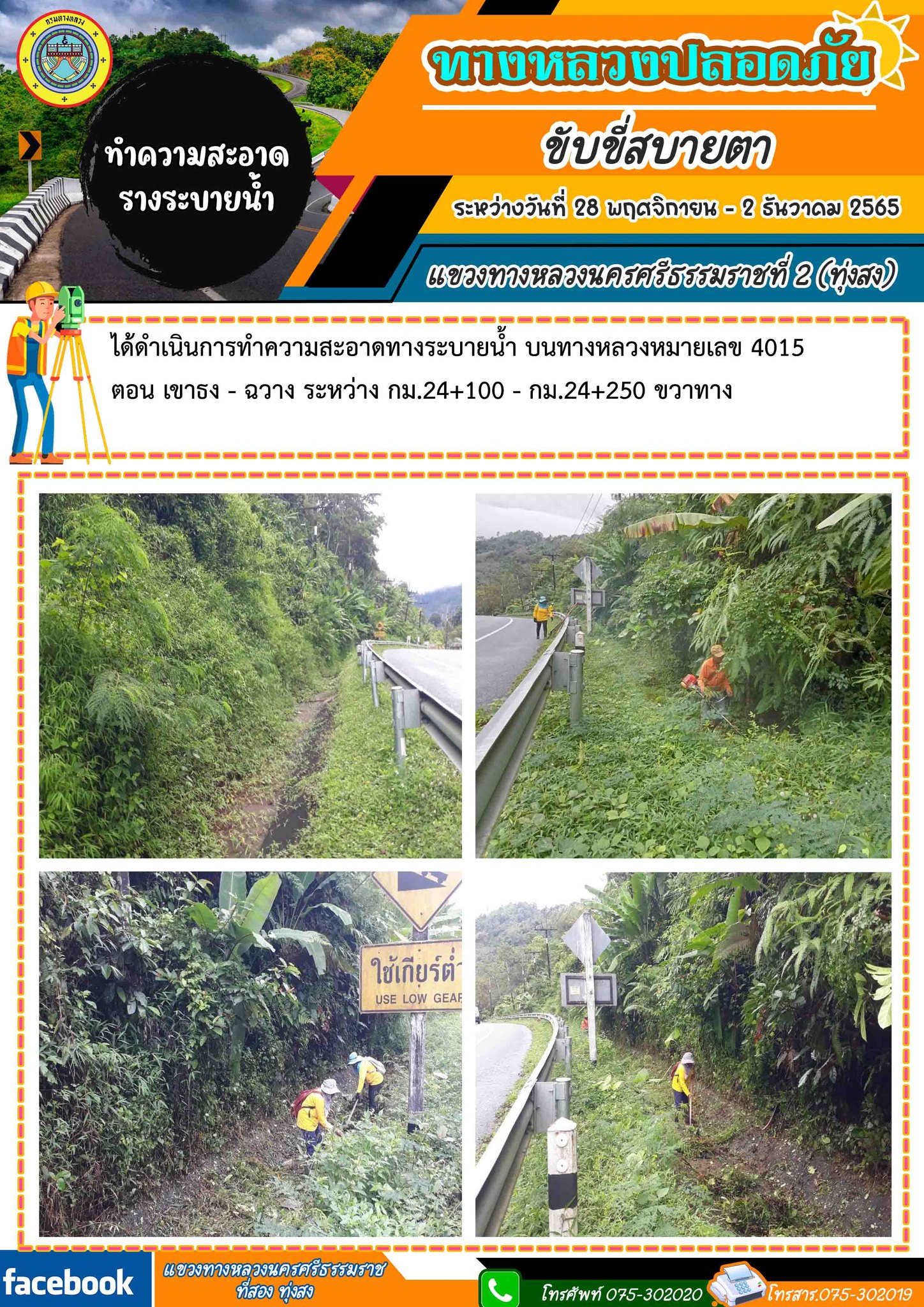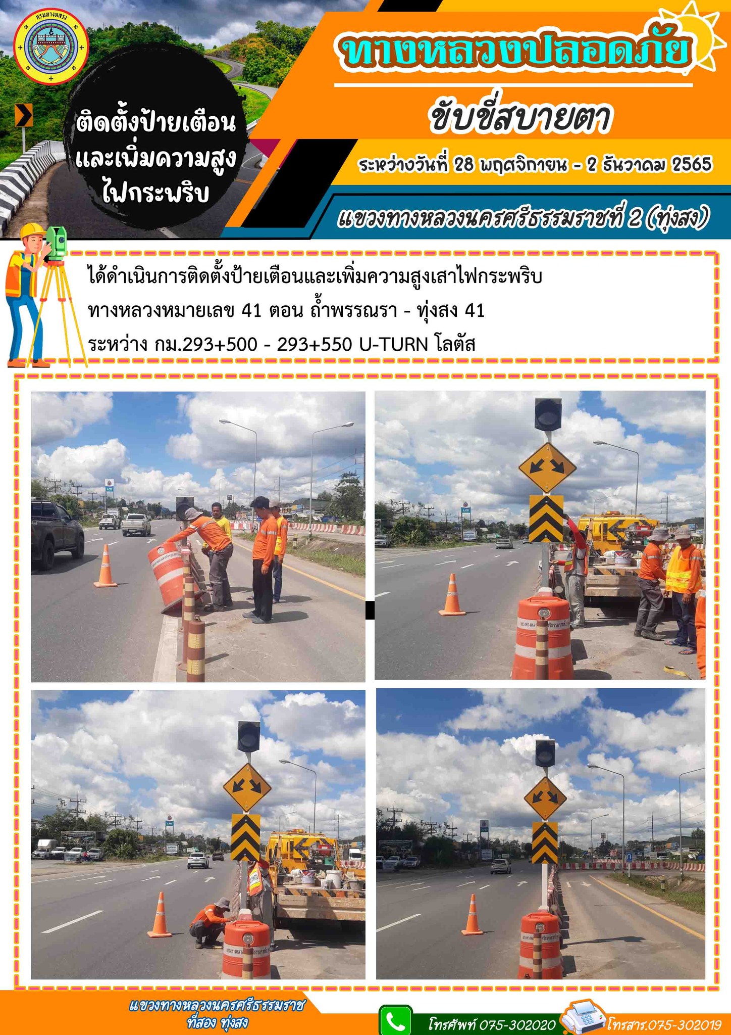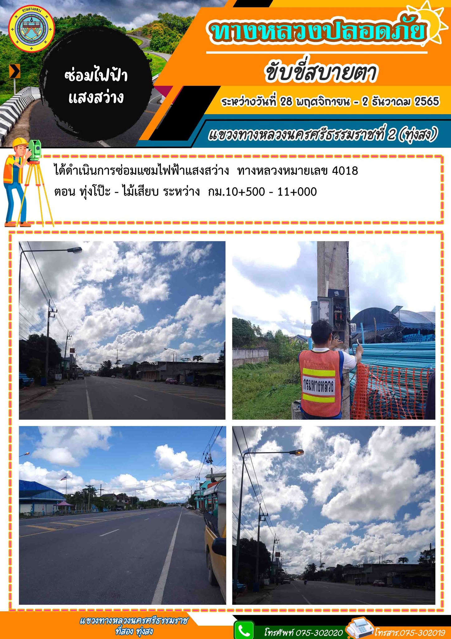 ผลการปฏิบัติงานของหมวดทางหลวงในสังกัด และหน่วยงานของแขวงทางหลวงนครศรีธรรมราชที่ 2 (ทุ่งสง) ระหว่าง วันที่ 28 พฤศจิกายน - 2 ธันวาคม 2565