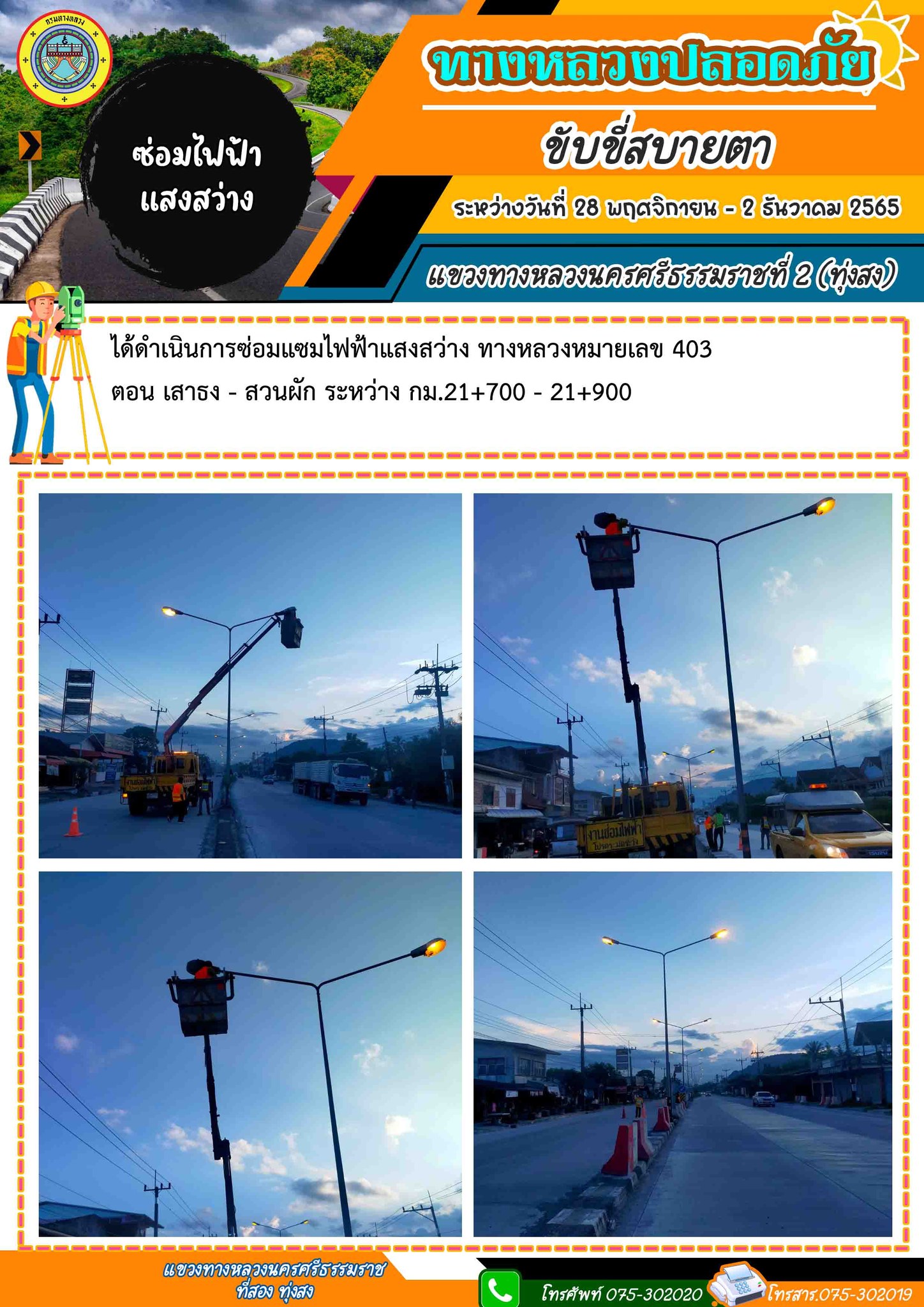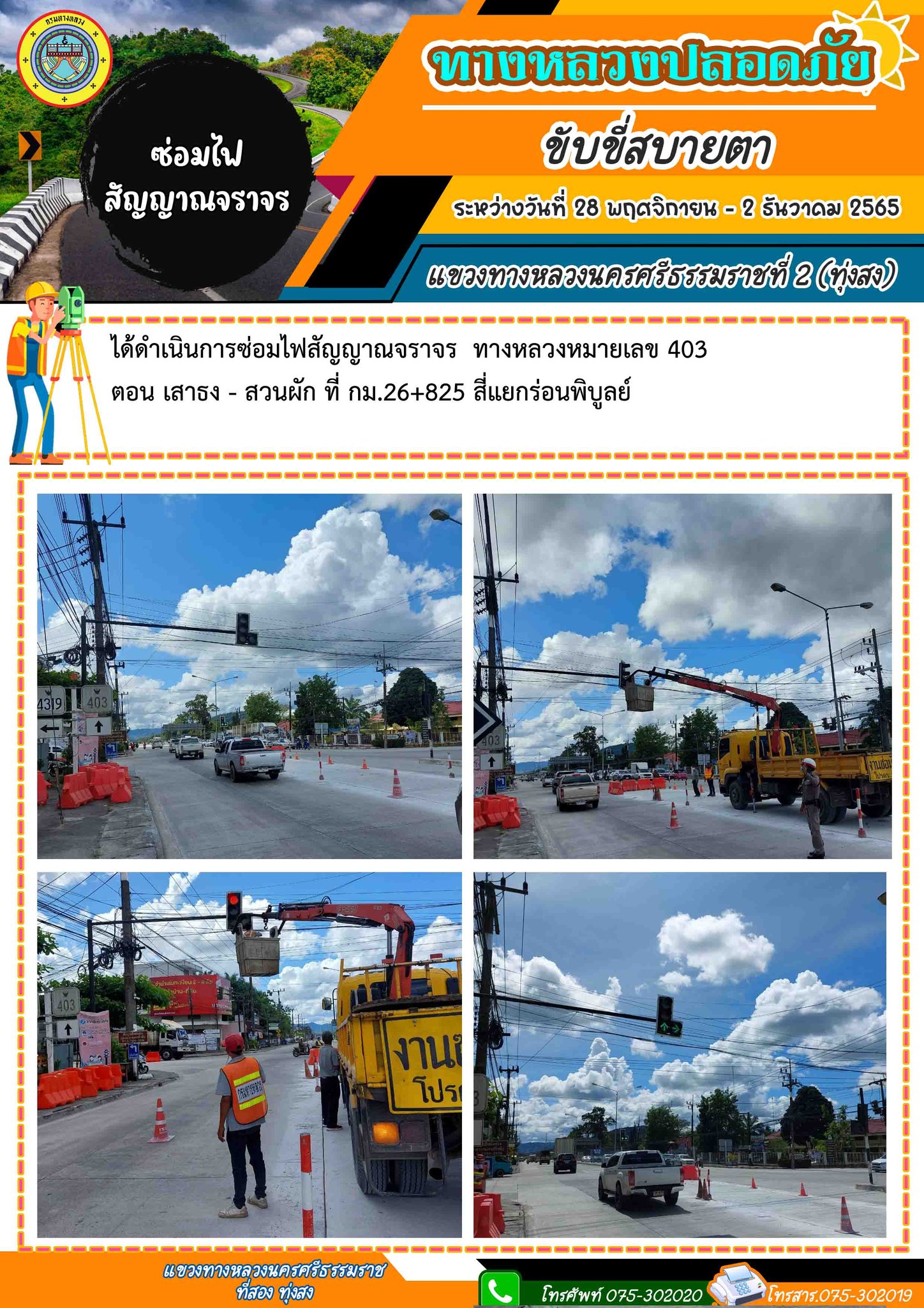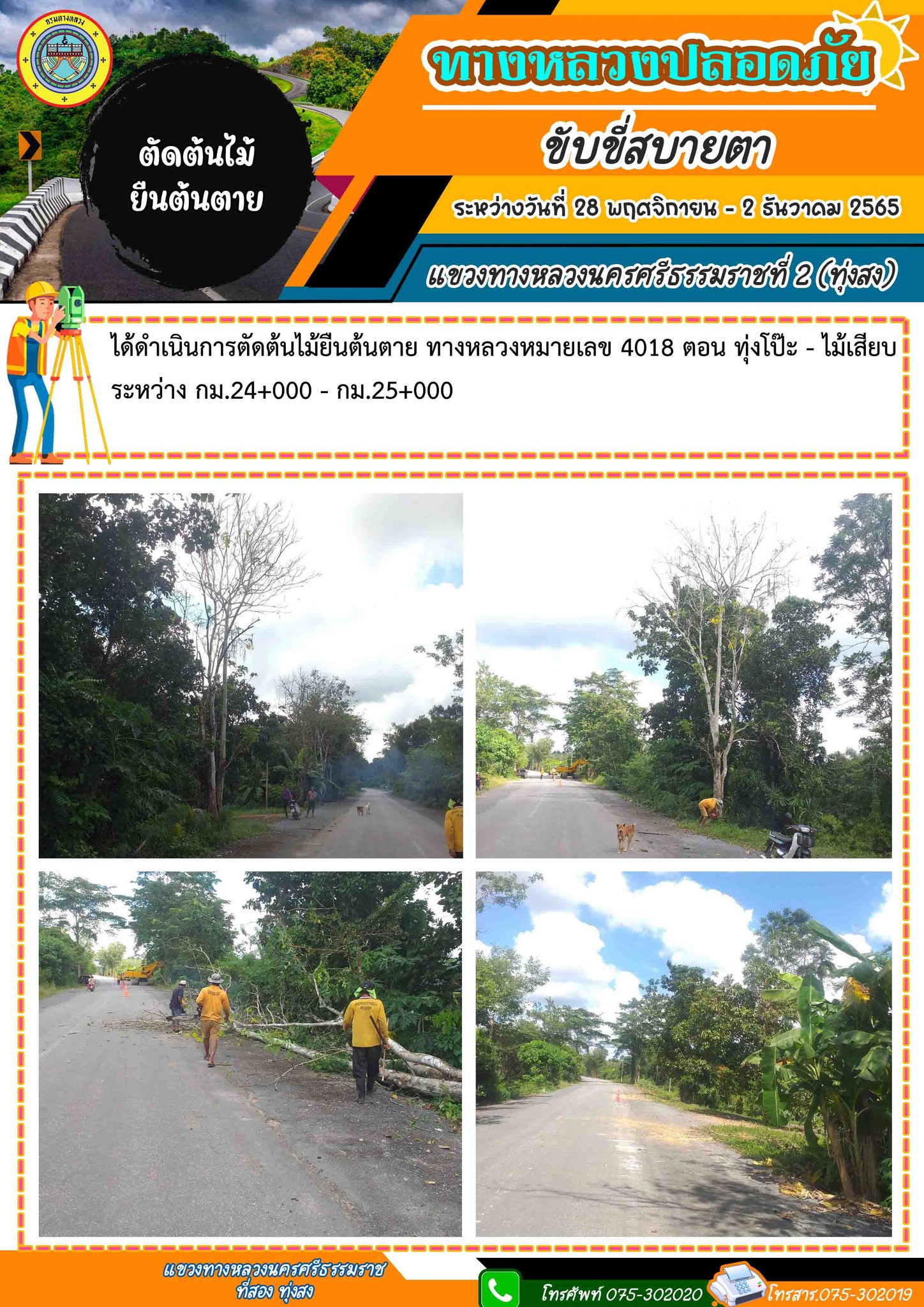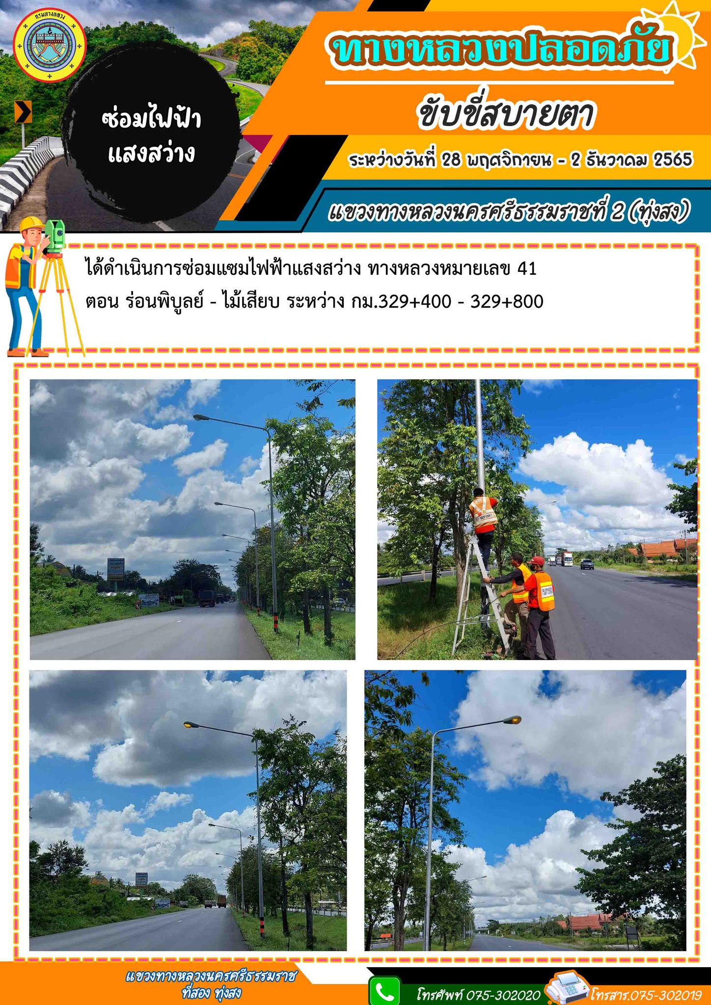 ผลการปฏิบัติงานของหมวดทางหลวงในสังกัด และหน่วยงานของแขวงทางหลวงนครศรีธรรมราชที่ 2 (ทุ่งสง) ระหว่าง วันที่ 28 พฤศจิกายน - 2 ธันวาคม 2565