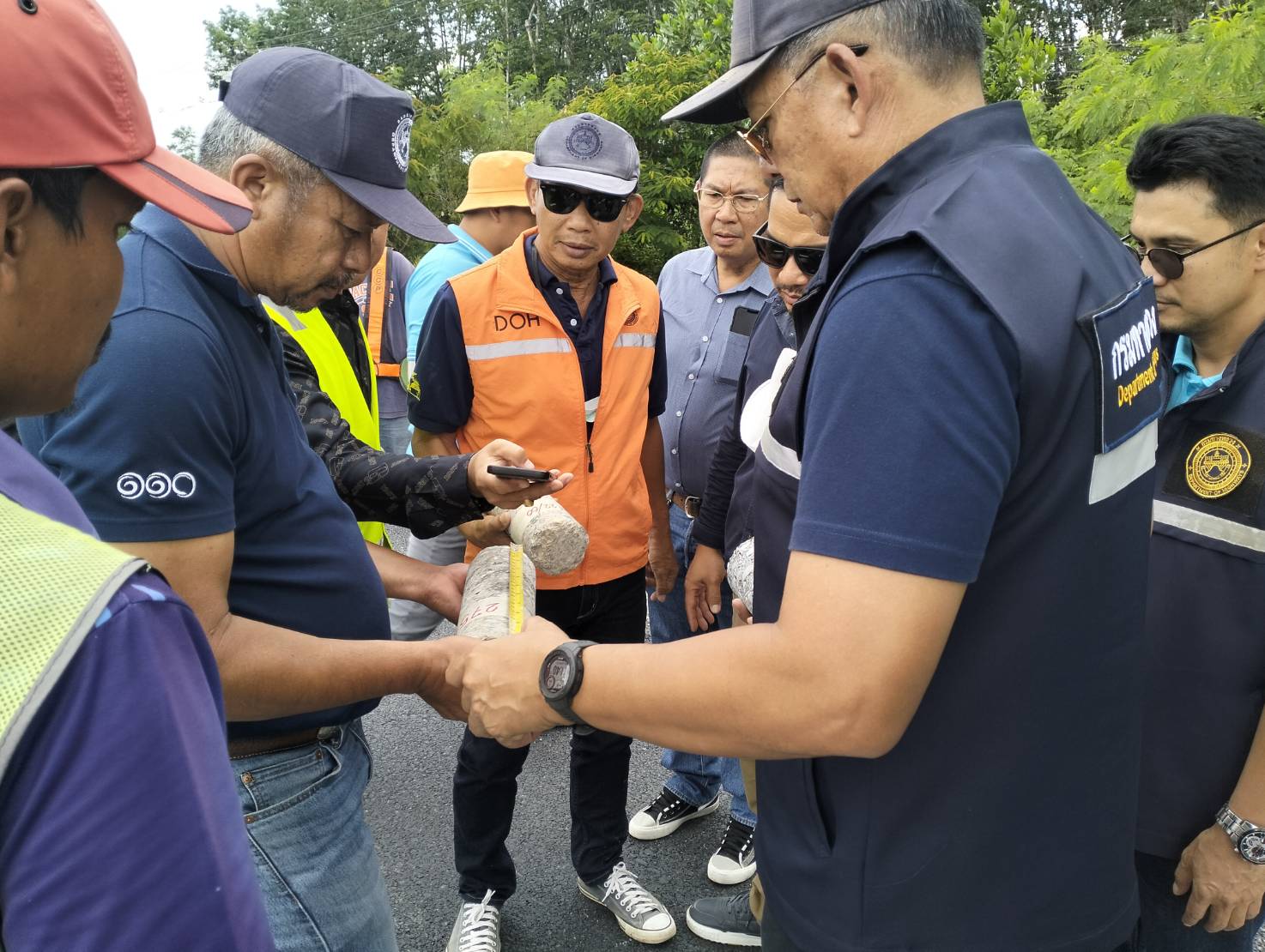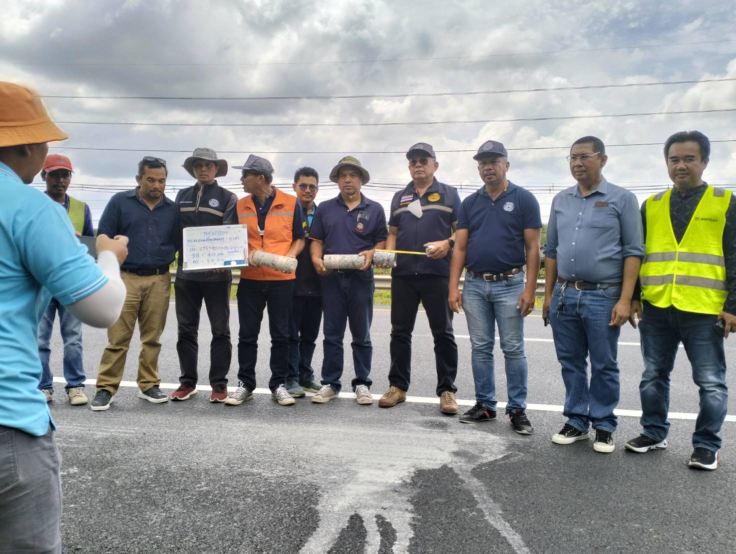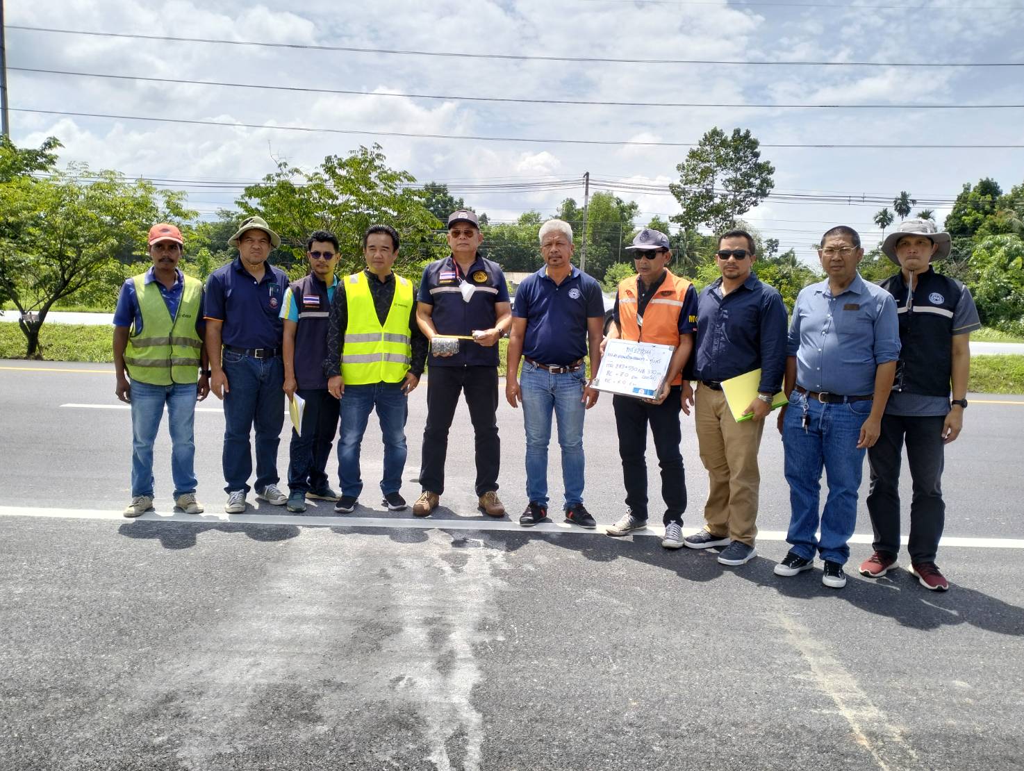 นายไพจิตร แสงทอง ผู้อำนวยการสำนักงานทางหลวงที่ 16 ประธานคณะกรรมการตรวจรับพัสดุ และคณะกรรมการตรวจรับพัสดุ ร่วมกันตรวจรับงานสัญญา ทส.22/2666 งานจ้างเหมาปรับปรุงทางหลวงเพื่อสนับสนุนการท่องเที่ยวกลุ่มจังหวัดภาคใต้ฝั่งอ่าวไทย สาย 41 ตอน ถ้ำพรรณรา - ทุ่งสง ระหว่าง กม.263+500 - กม.292+250 NB.
