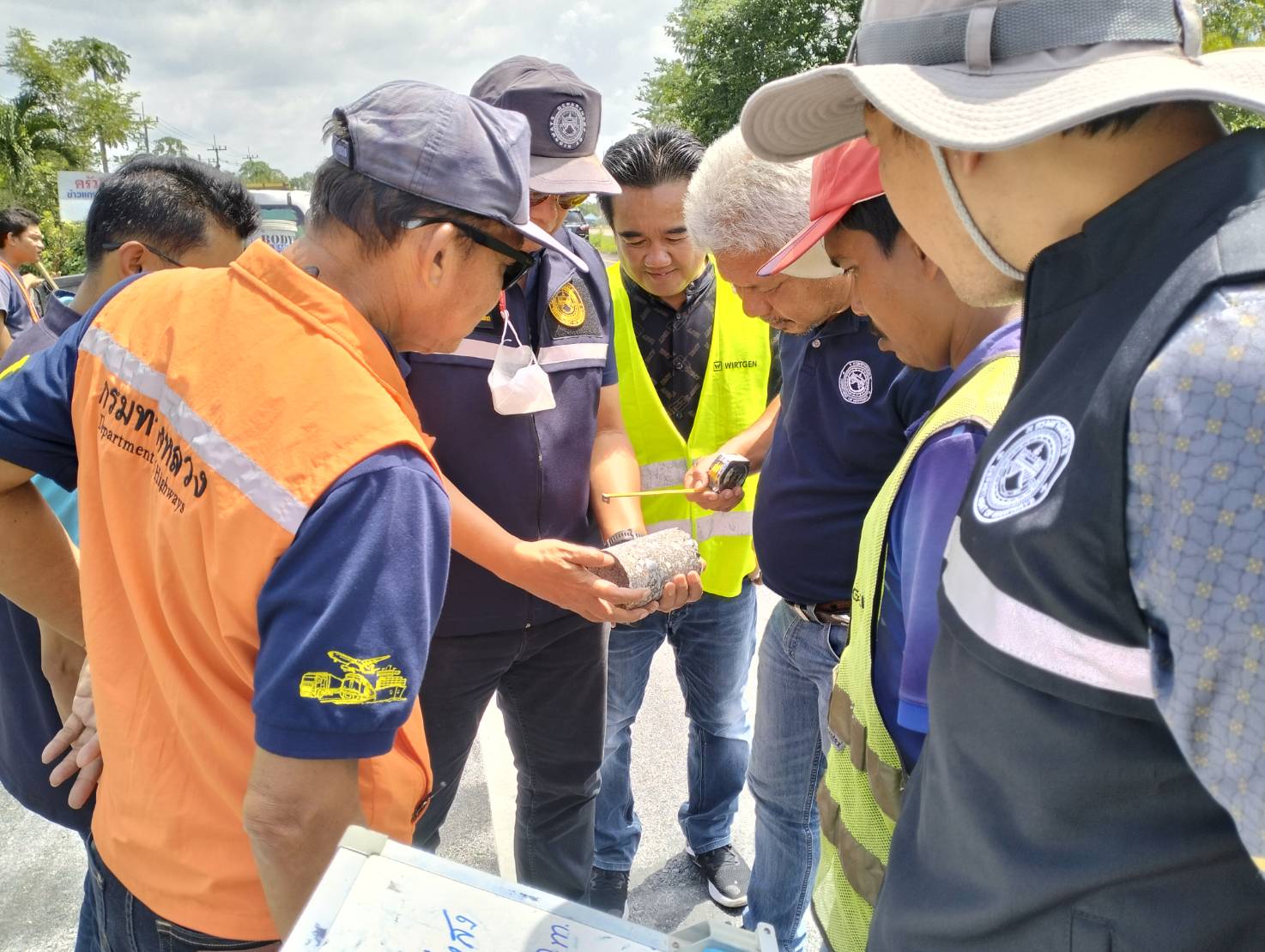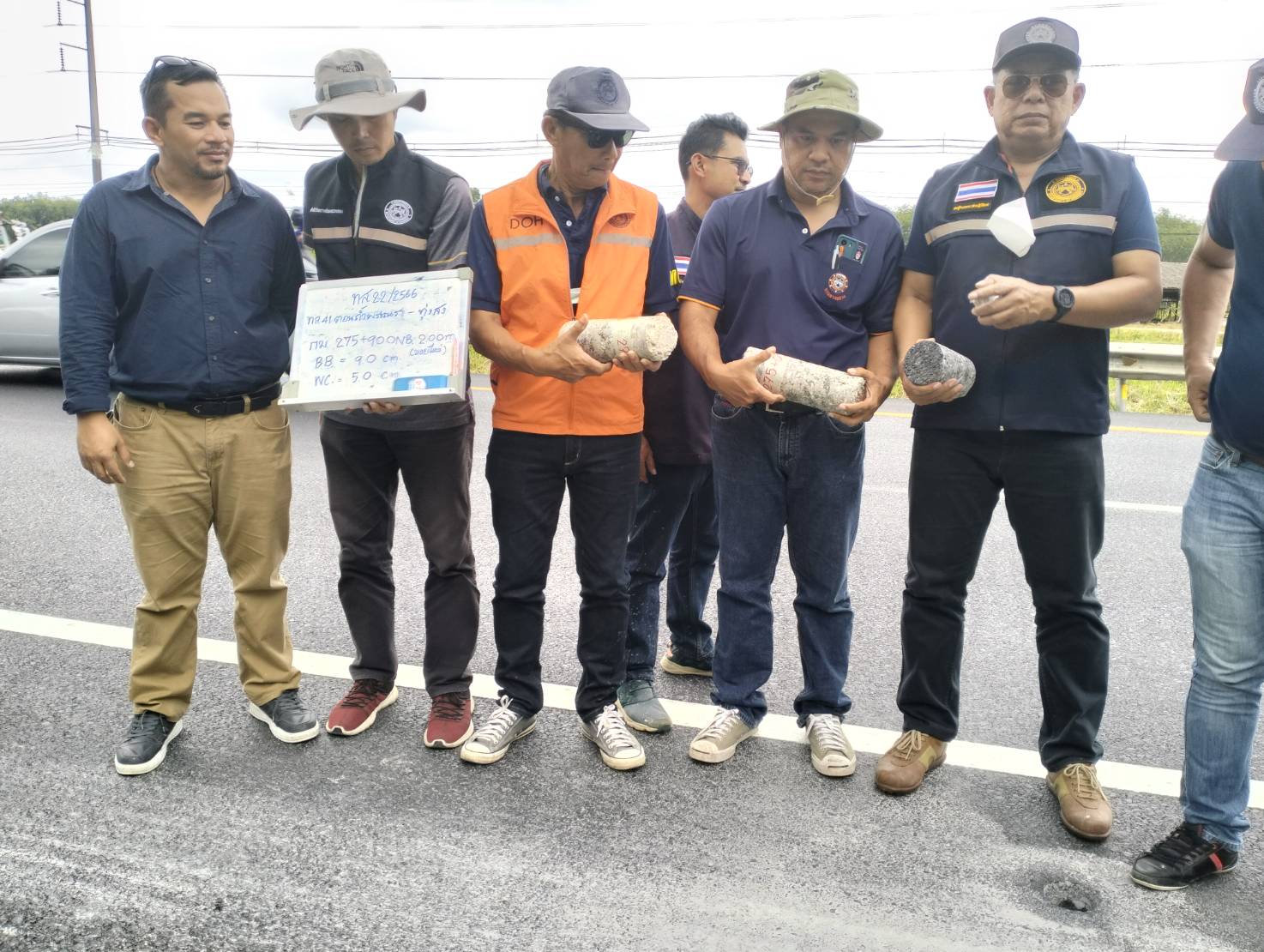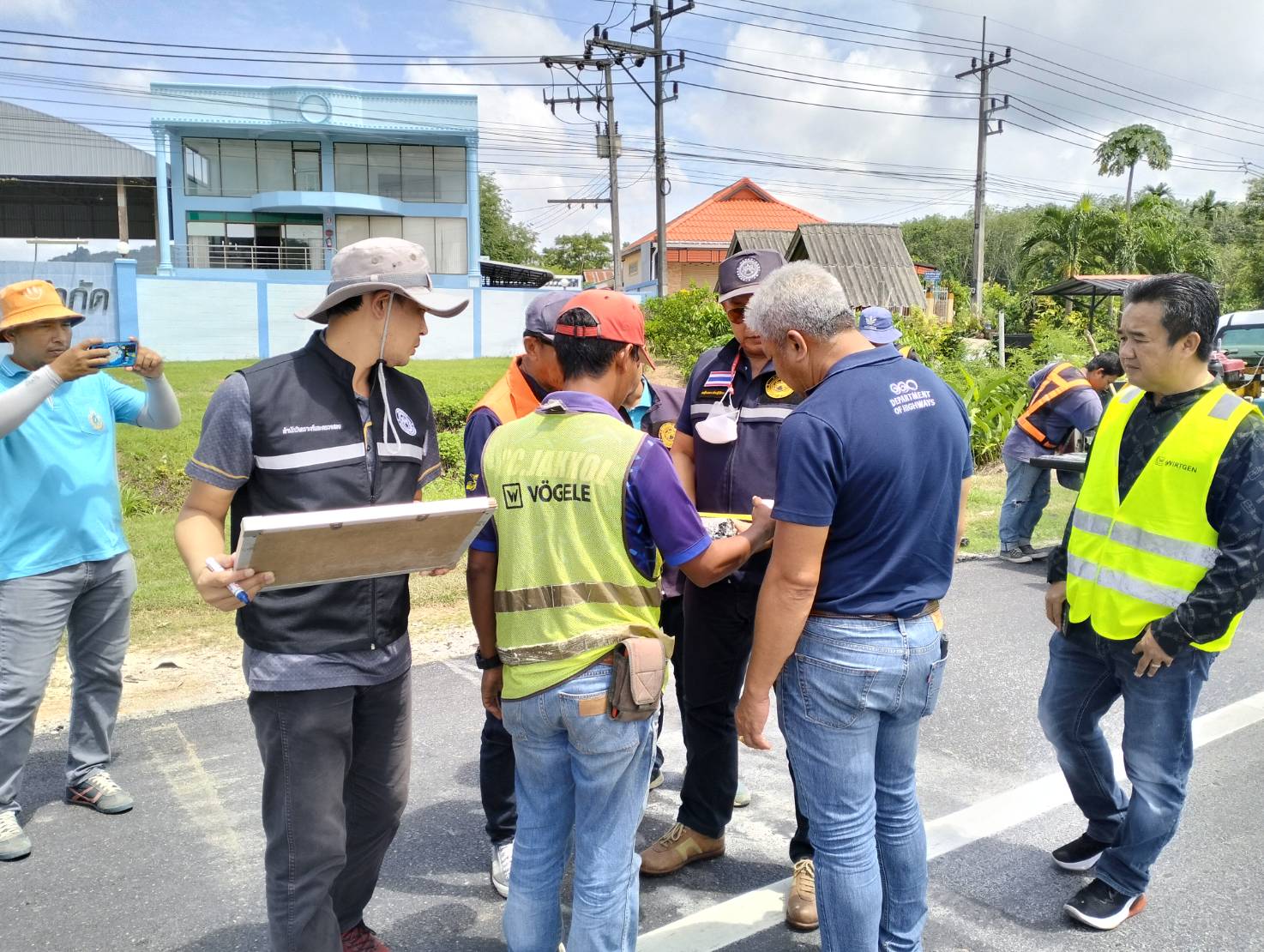 นายไพจิตร แสงทอง ผู้อำนวยการสำนักงานทางหลวงที่ 16 ประธานคณะกรรมการตรวจรับพัสดุ และคณะกรรมการตรวจรับพัสดุ ร่วมกันตรวจรับงานสัญญา ทส.22/2666 งานจ้างเหมาปรับปรุงทางหลวงเพื่อสนับสนุนการท่องเที่ยวกลุ่มจังหวัดภาคใต้ฝั่งอ่าวไทย สาย 41 ตอน ถ้ำพรรณรา - ทุ่งสง ระหว่าง กม.263+500 - กม.292+250 NB.