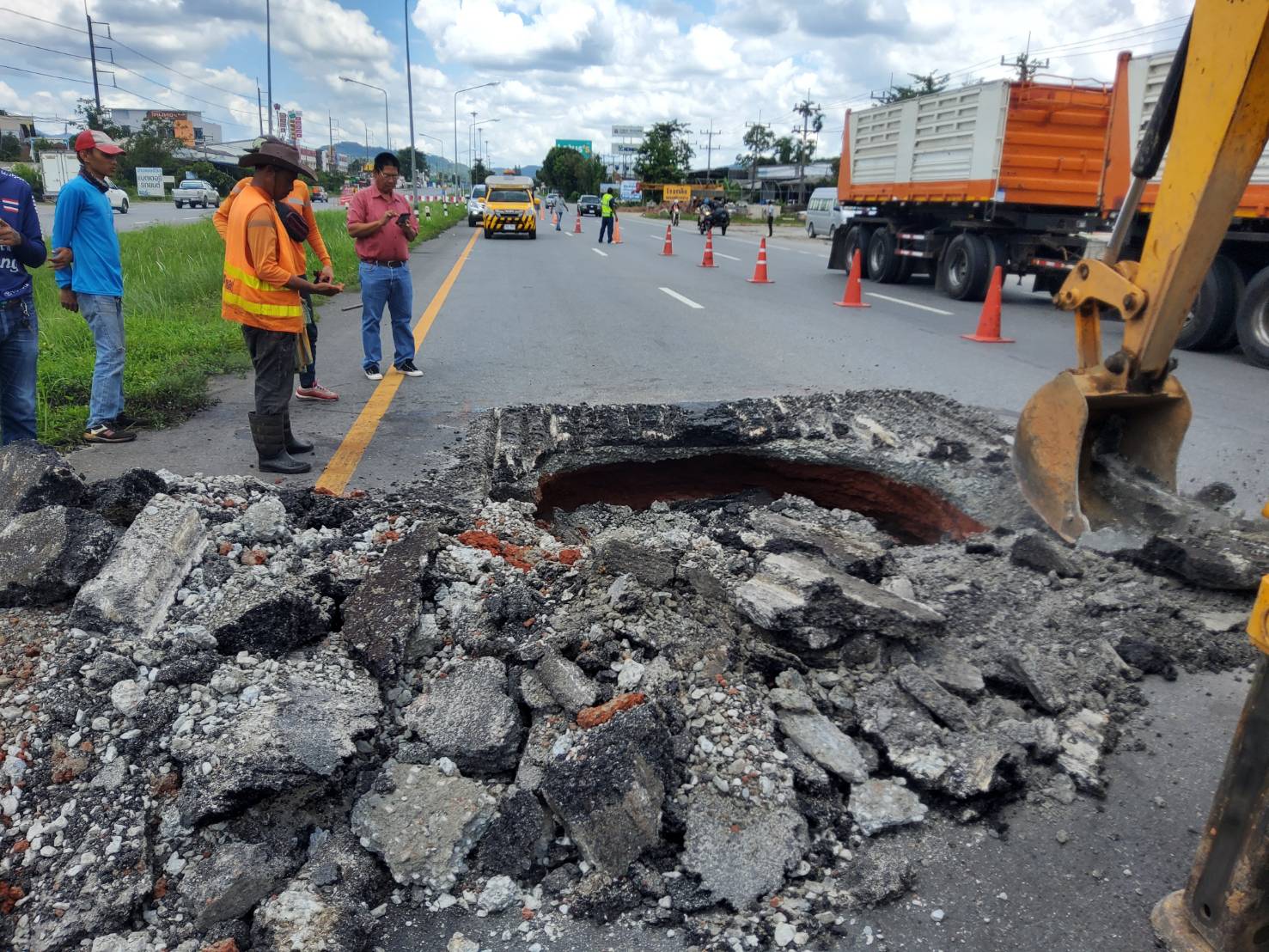 แขวงทางหลวงนครศรีธรรมราชที่ 2 (ทุ่งสง) ได้ดำเนินการขุดซ่อมผิวทาง ในทางหลวงหมายเลข 41 ตอน ถ้ำพรรณรา - ทุ่งสง ที่ กม.293+350 ด้านขวาทาง เนื่องจากถนนเกิดการทรุดตัวสาเหตุเกิดจากมีน้ำซึมเข้าวัสดุคันทางทำให้เกิดความชื้นและเกิดการทรุดตัวเป็นโพรงบนถนน หลังจากเกิดเหตุ แขวงฯ ได้ดำเนินการขุดซ่อมผิวทางโดยเร่งด่วนทำให้ขณะนี้สามารถใช้งานทางหลวงได้ตามปกติแล้ว
