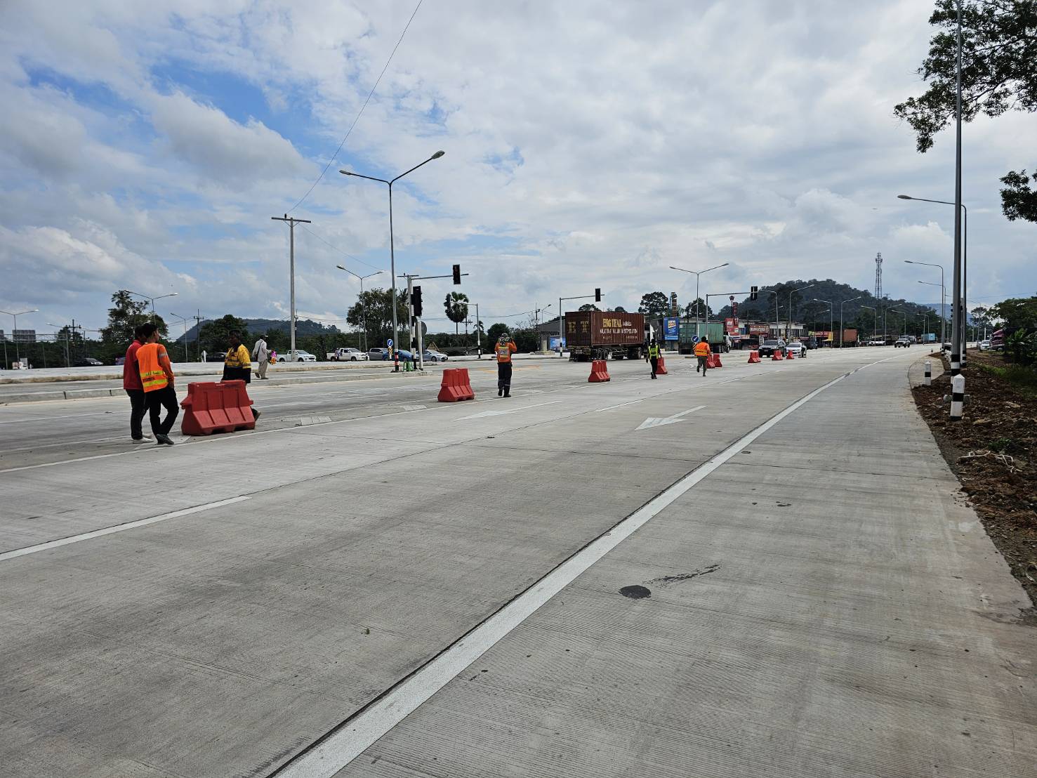 ติดตั้งแบริเออร์พลาสติกและหลักล้มลุกเพื่อแบ่งช่องจราจร พร้อมติดตั้งป้ายเตือน ในทล.41