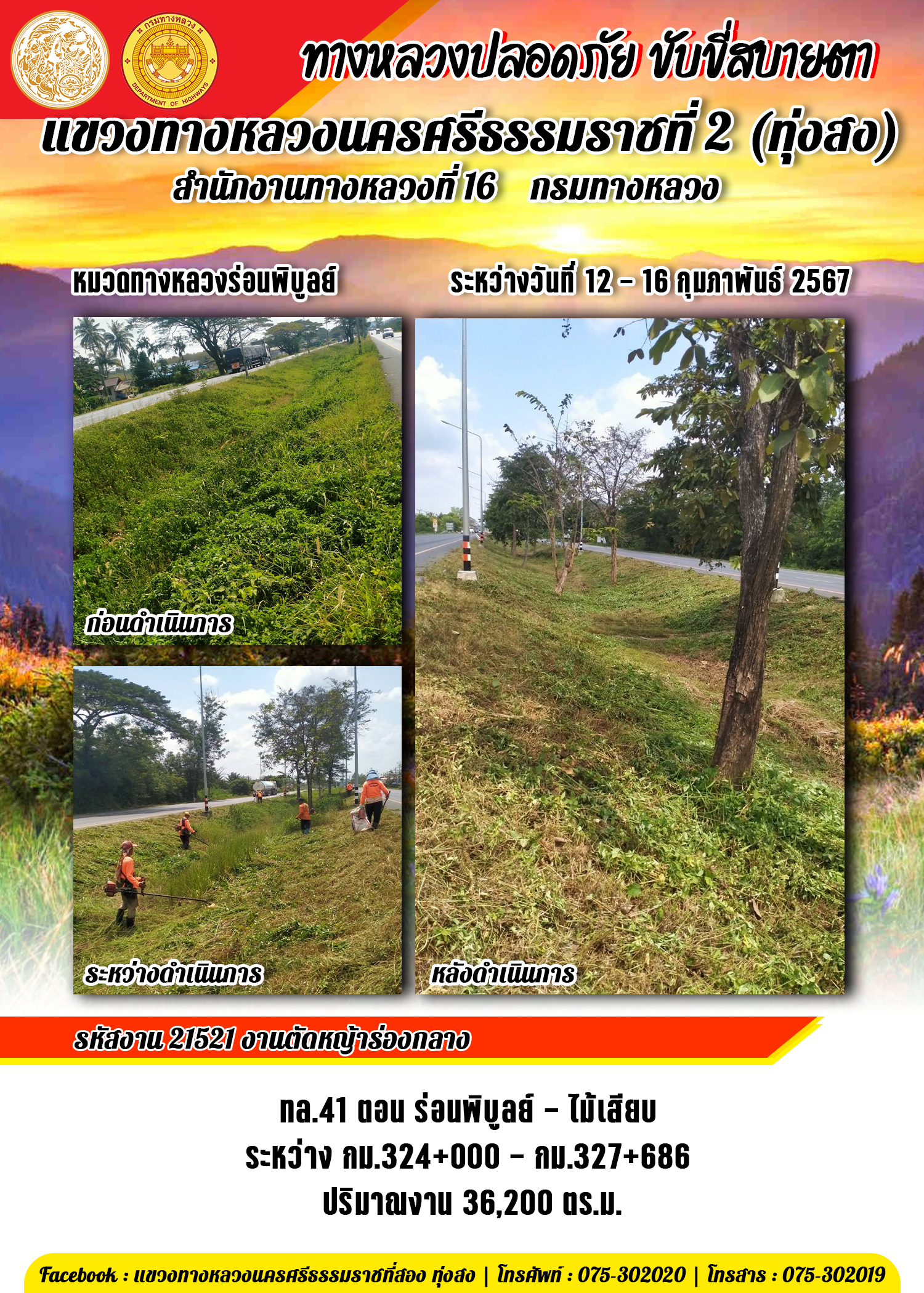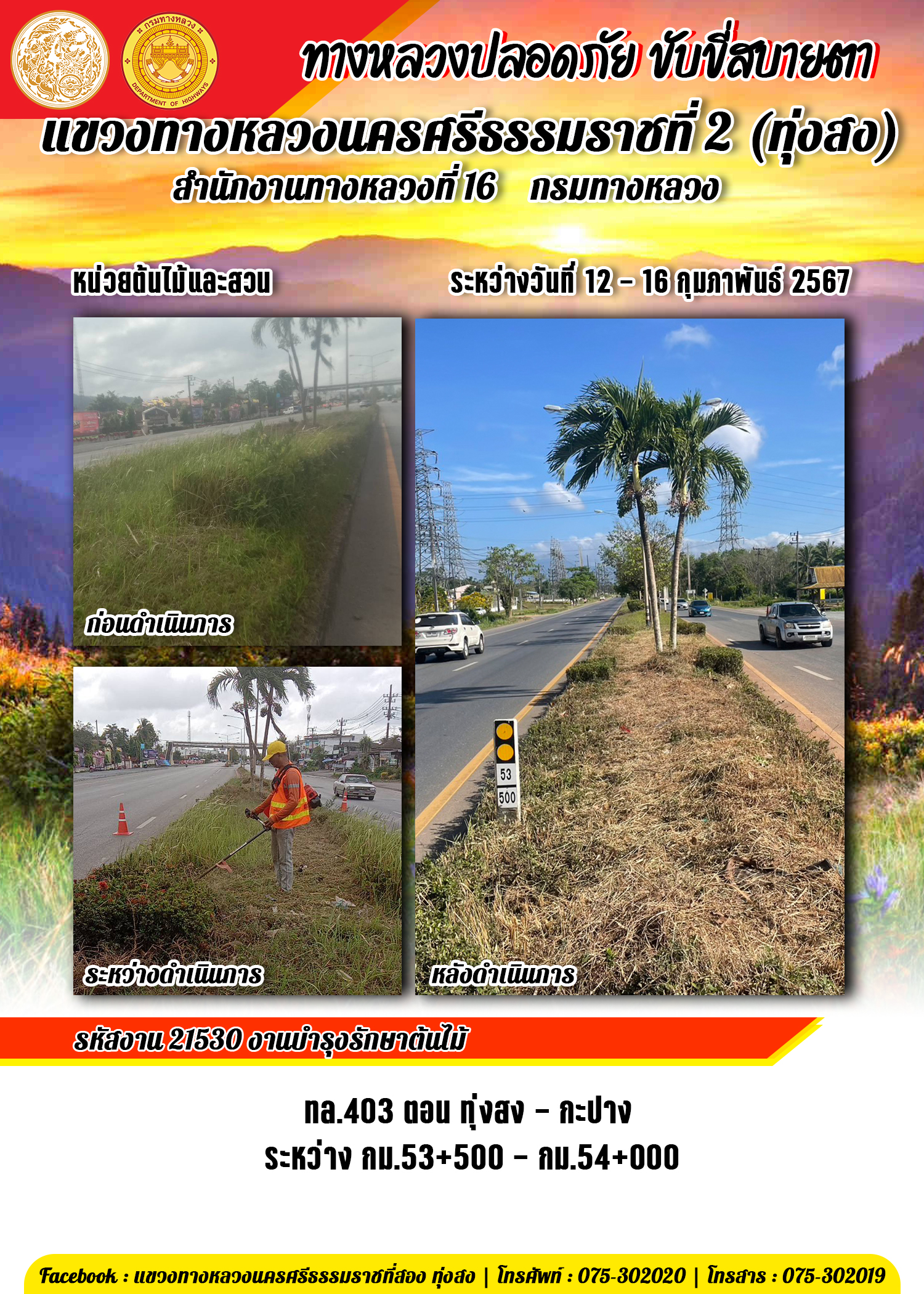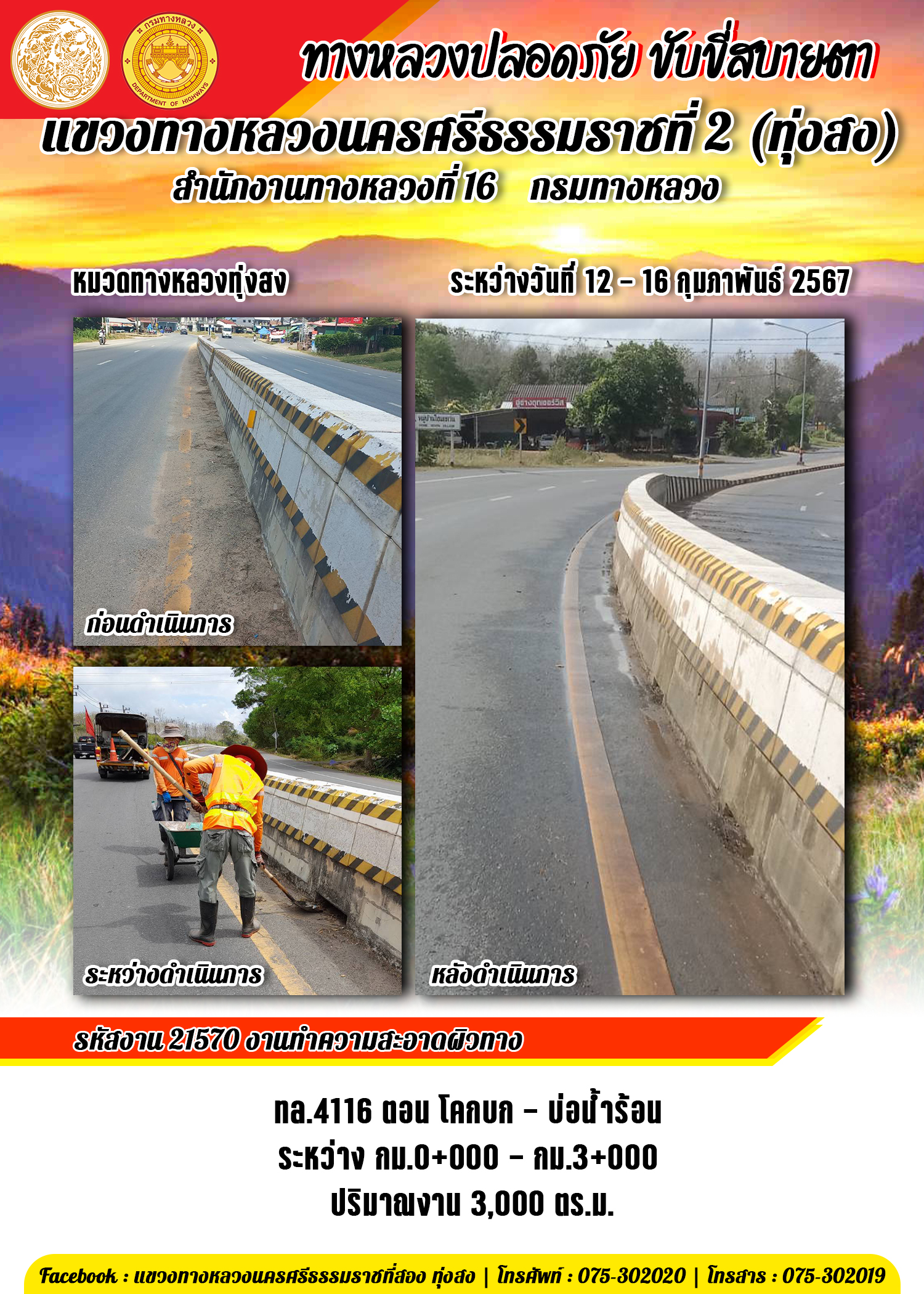 ข้อมูลข่าว : รายงานผลการปฏิบัติงาน ประจำวันที่ 12-16 กุมภาพันธ์ พ.ศ.2567 ของหมวดทางหลวงและหน่วยงานในสังกัด