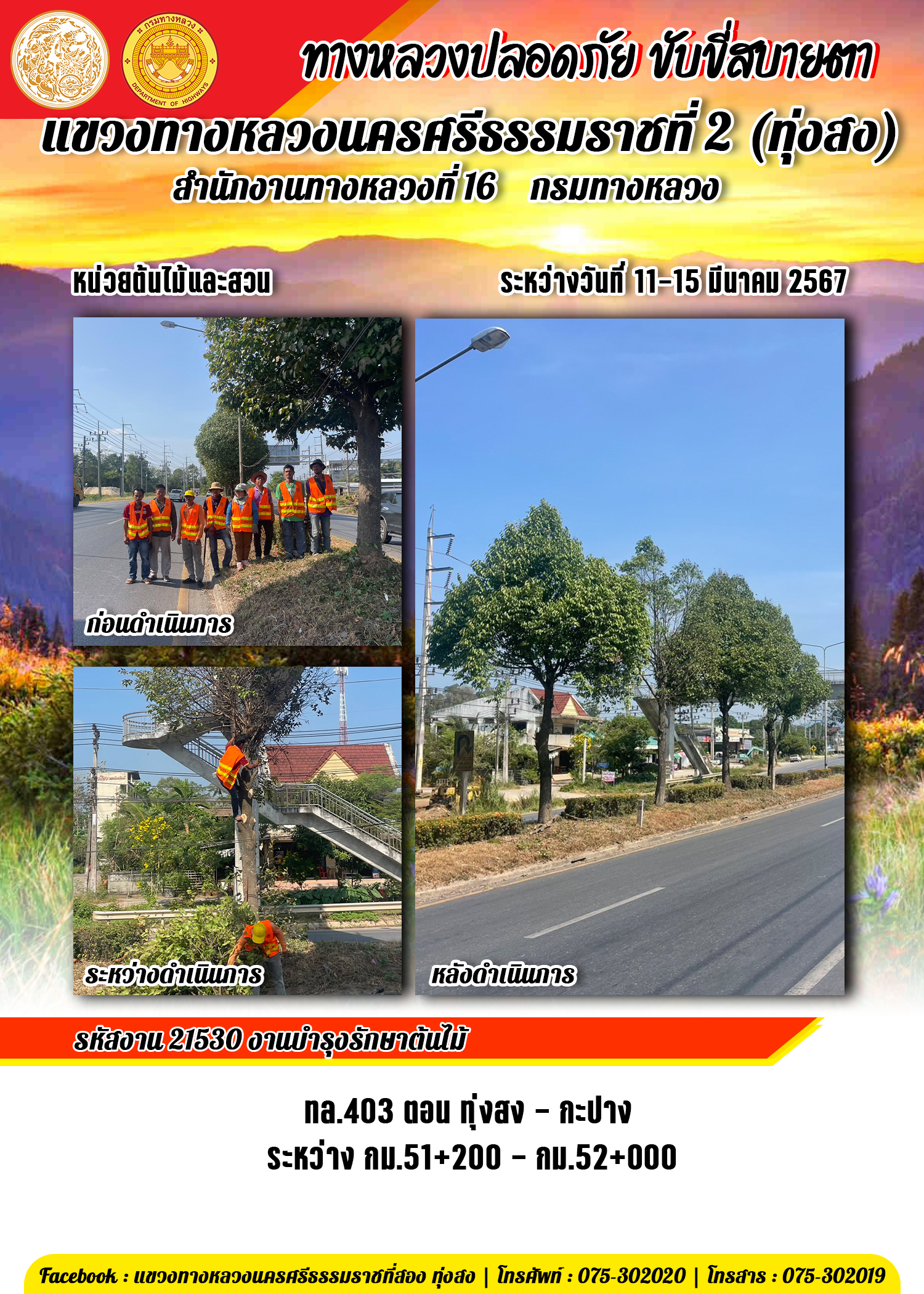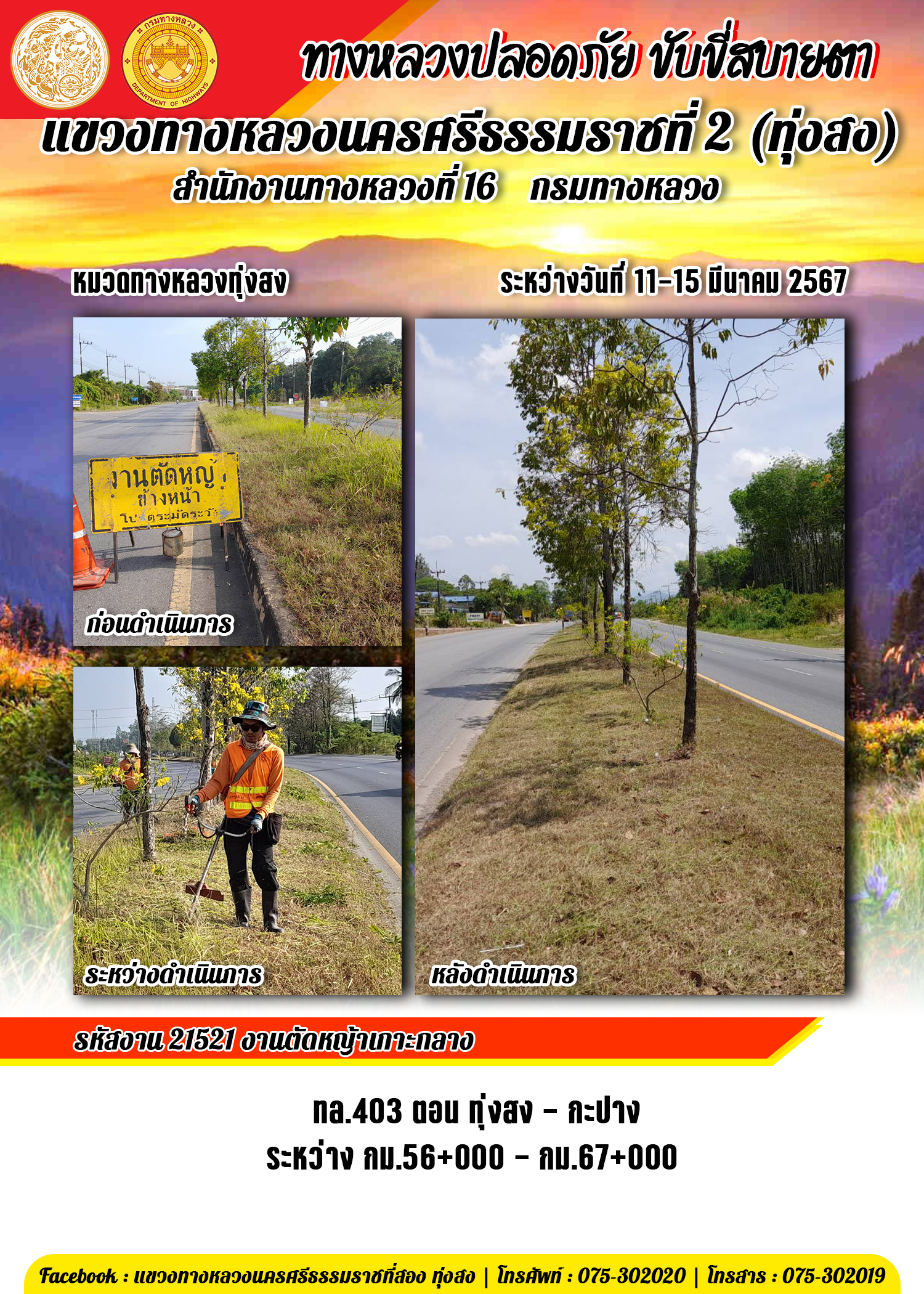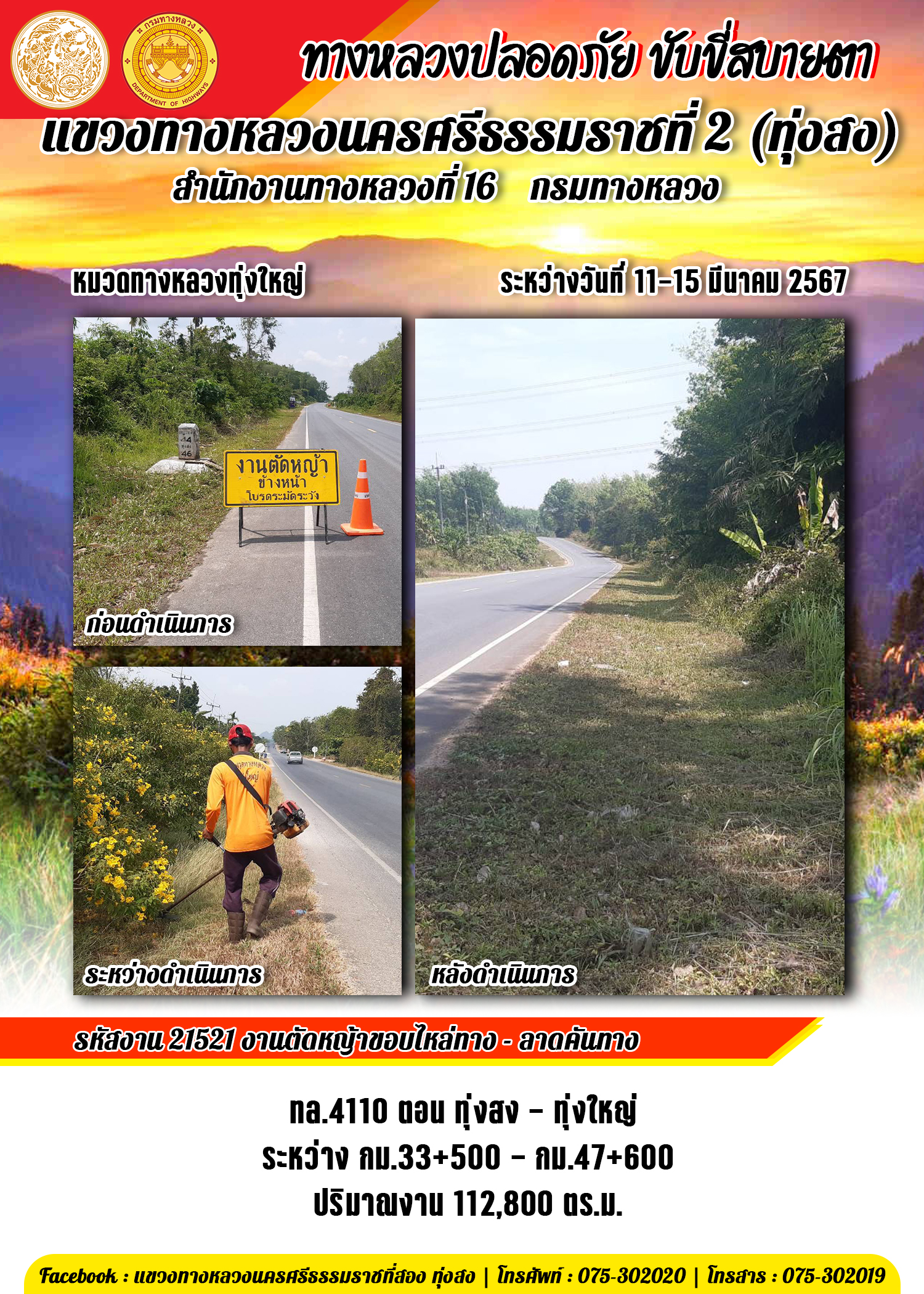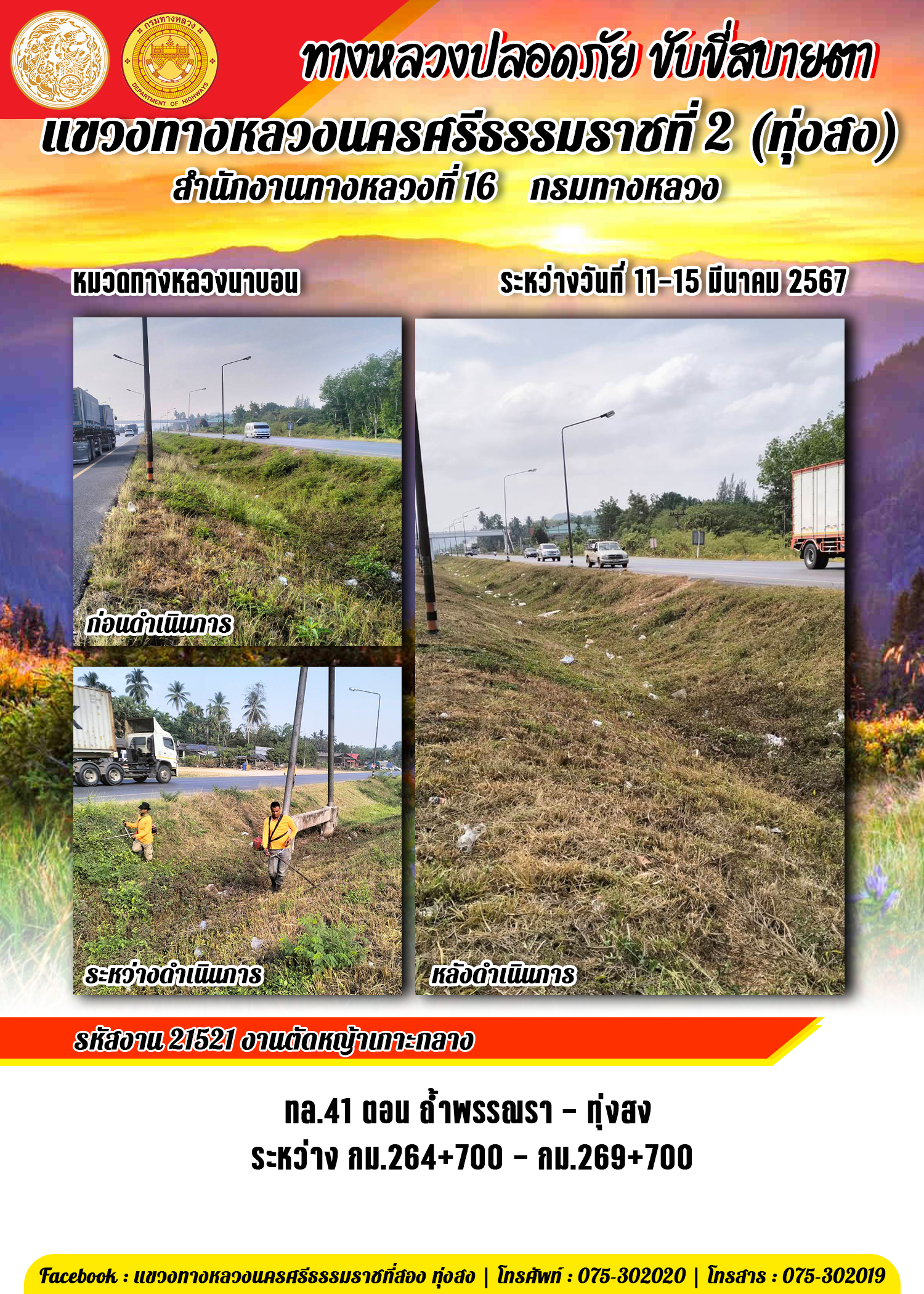 ข้อมูลข่าว : รายงานผลการปฏิบัติงาน ประจำวันที่ 11-15 มีนาคม พ.ศ.2567 ของหมวดทางหลวงและหน่วยงานในสังกัด