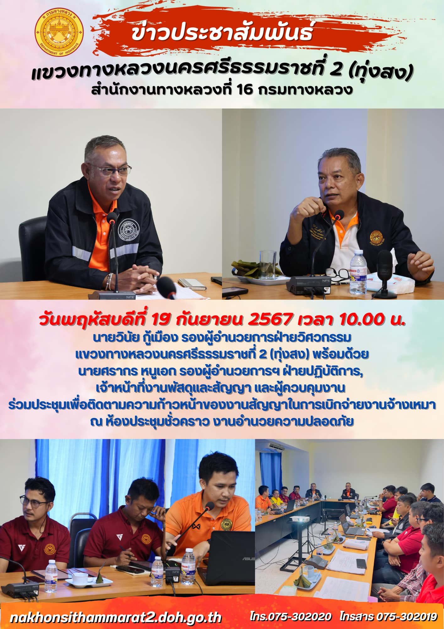 ประชุมเพื่อติดตามความก้าวหน้าของงานสัญญาในการเบิกจ่ายงานจ้างเหมา